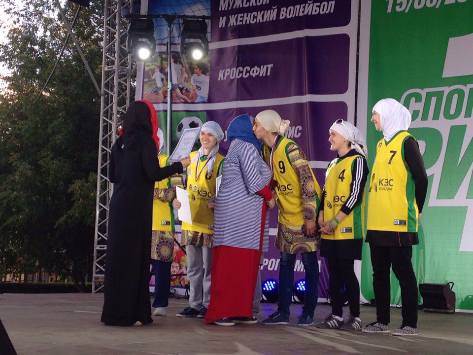 В волейбол сыграли команды активных мусульманок из разных регионов России, таких как Москва, Пенза, Челябинск, Пермь, Уфа, Крым.
