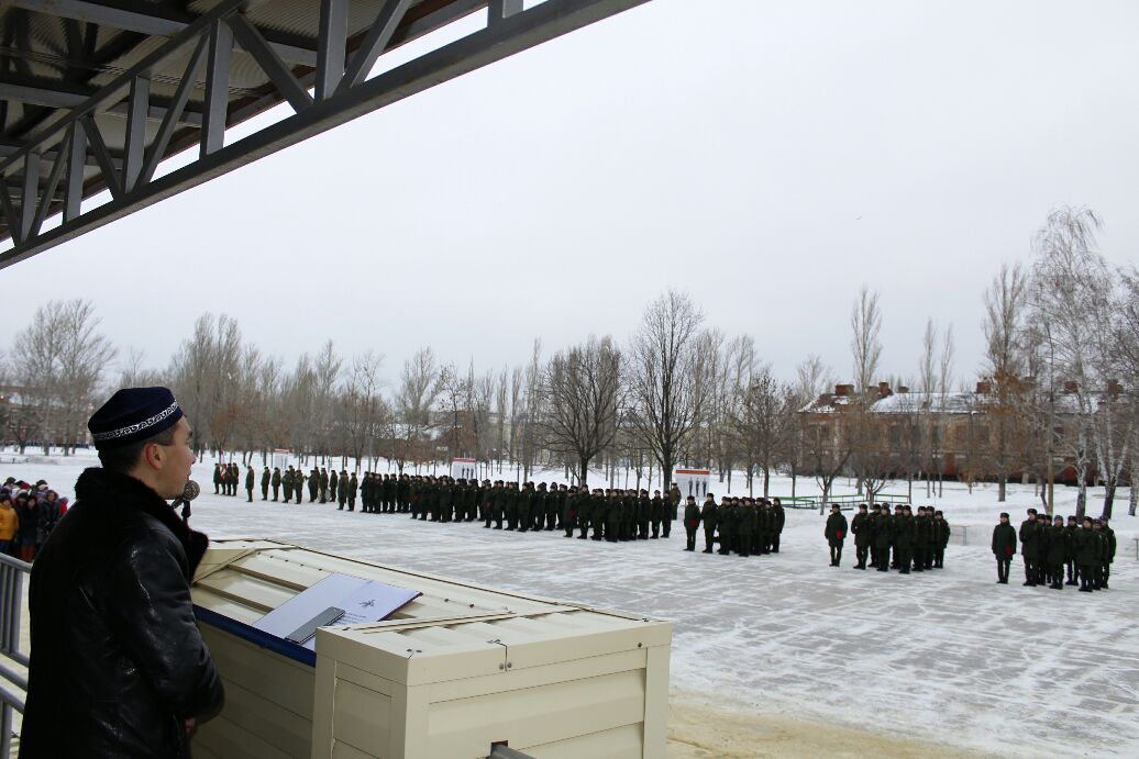 Прочитав аяты Священного Корана, имам-хатыб Соборной мечети г.Саратова Джалгас-хазрат Ибатов от имени сопредседателя Совета муфтиев России, главы Духовного управления мусульман Саратовской области Мукаддаса-хазрата Бибарсова поздравил курсантов с принятием воинской присяги. Он также пожелал им доблести и отваги, крепкого здоровья, найти хороших товарищей и надежных друзей.