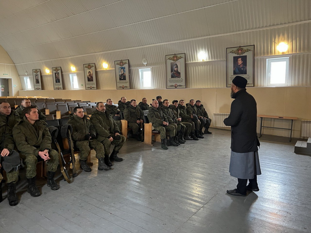 Имам-хатыб Саратовской Соборной мечети прочитал аяты из Священного Корана и сделал дуа. В своем обращении к собравшимся Рустам-хазрат Мухитов призвал их всегда помнить о Всевышнем Аллахе, оставаться мусульманином в любой ситуации, а также достойно пройти испытания. Также религиозный деятель ответил на вопросы, которые интересуют мобилизованных мусульман.