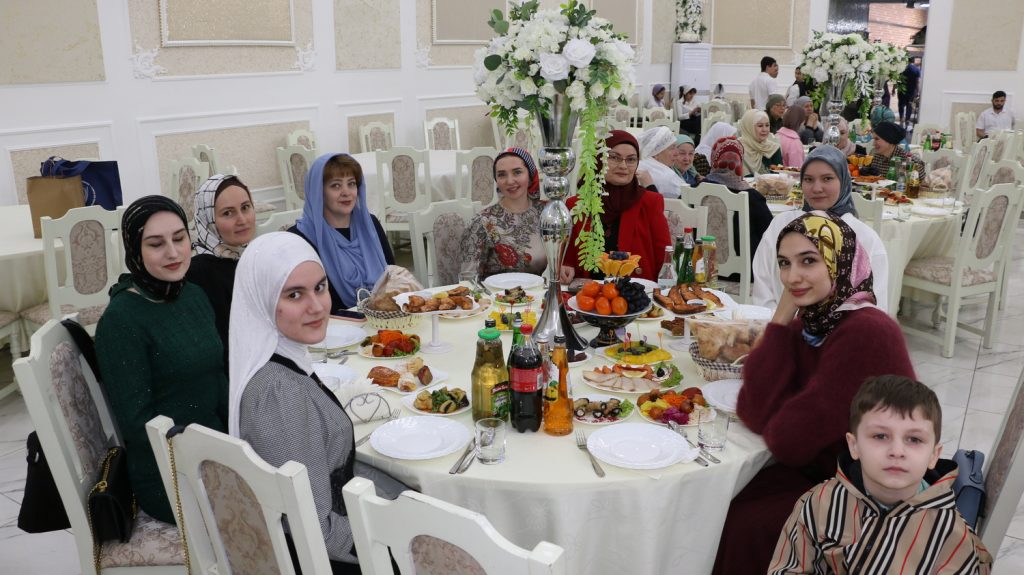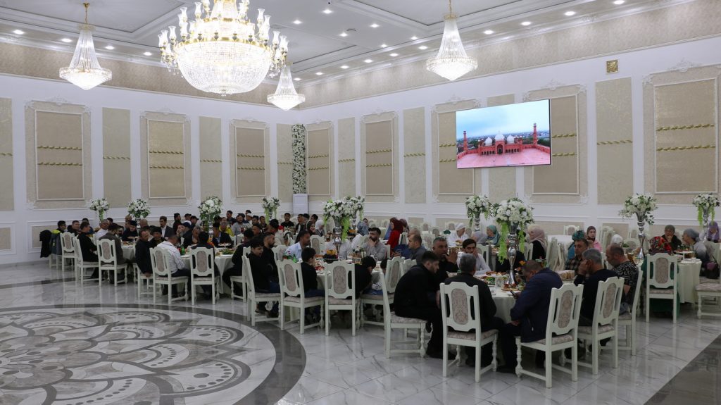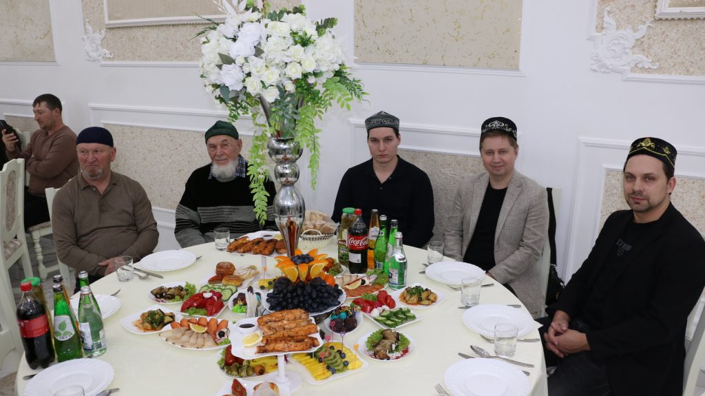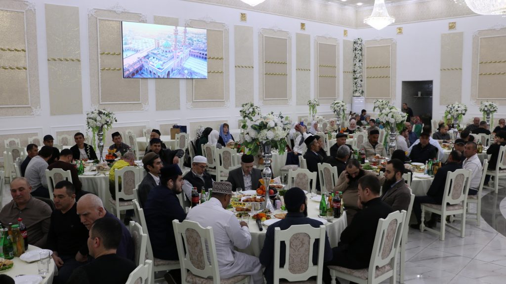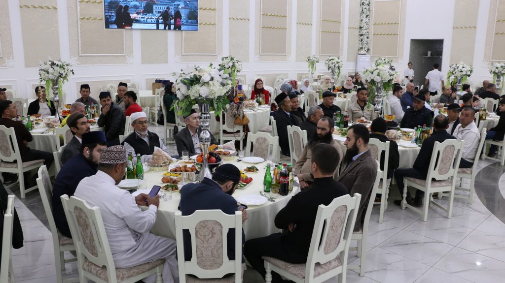 С заходом солнца прозвучал азан, после чего собравшиеся прервали уразу и отведали различные блюда. За одним столом сидели люди разных возрастов и национальностей, они общались в теплой атмосфере и делились впечатлениями от очередного дня Рамадана.