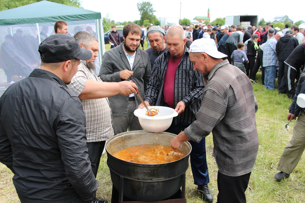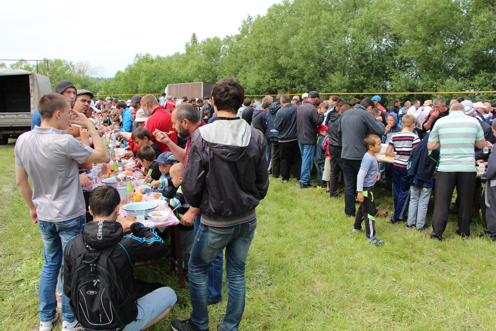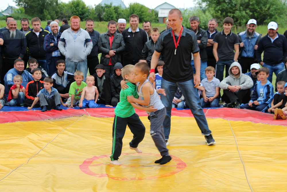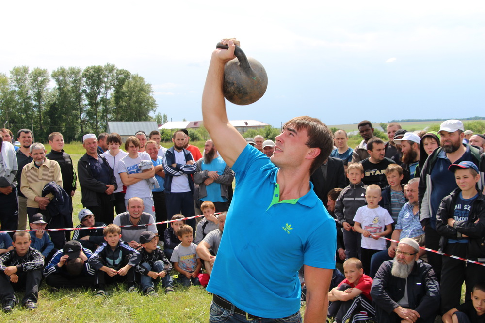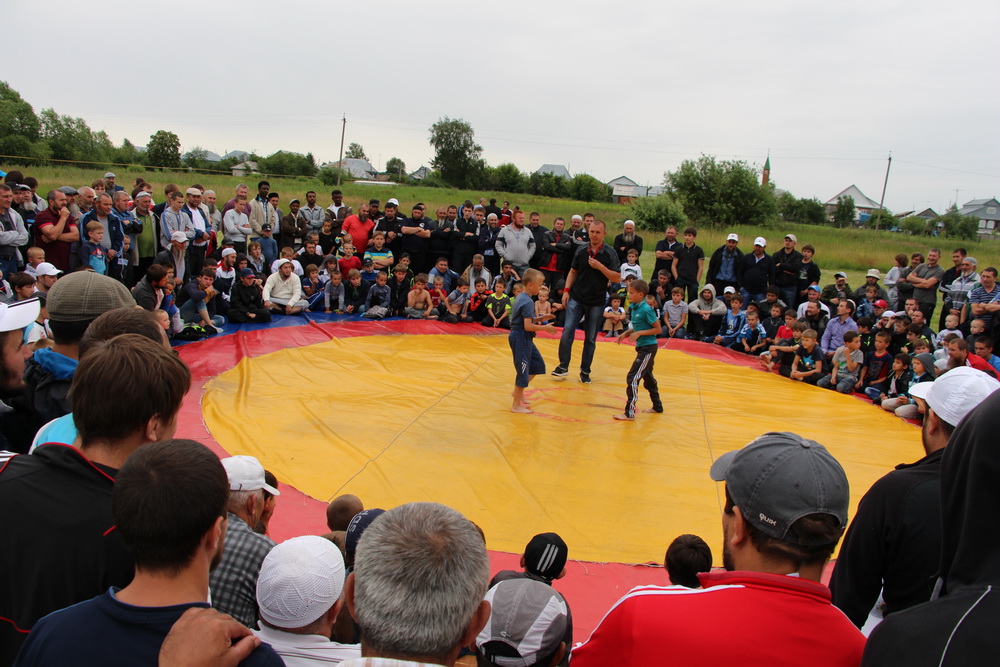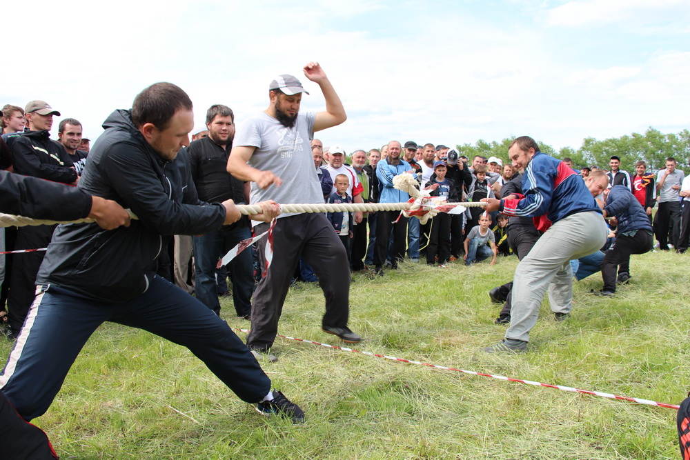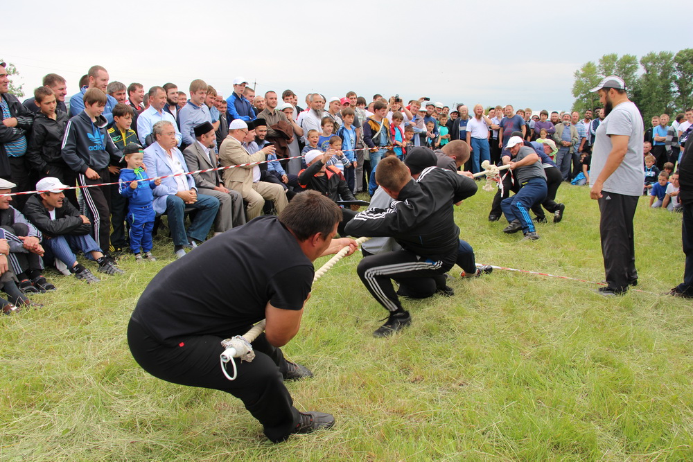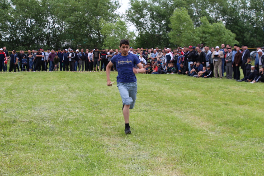 Далее, после совершения обеденной молитвы и вкусных угощений, началась спортивная программа народного праздника. Местные жители активно принимали участие в армрестлинге, поднятии гири (24 кг), перетягивании каната, борьбе и эстафетном беге. Среди игроков была не только молодежь, но и маленькие дети и пенсионеры. Все конкурсы сопровождались криками болельщиков, радостными улыбками и воодушевлением.