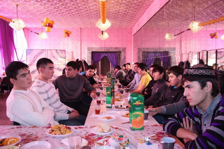 Стоит отметить, что, общаясь между собой в неформальной обстановке, задавая вопросы муфтию области, слушая игру на национальном музыкальном инструменте домбра, с наступлением времени молитвы молодые люди совершили коллективный намаз и продолжили культурный вечер.