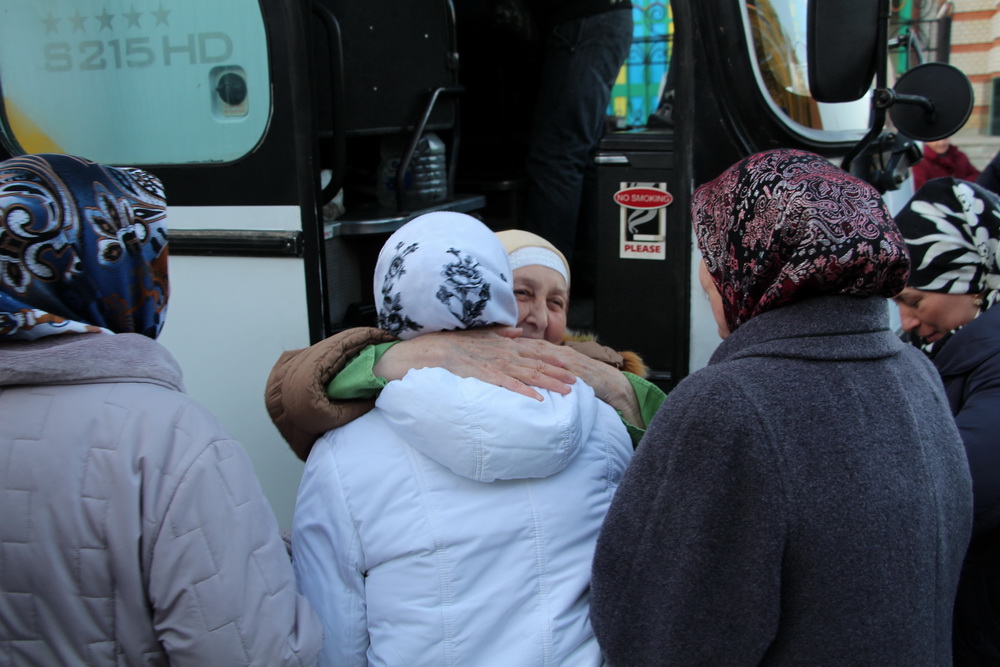 После этого паломники загрузили в автобус свои вещи, попрощались с единоверцами и отправились в Москву, откуда самолетом с пересадкой в Аммане (Иордания) они направятся в Джидду (Саудовская Аравия).