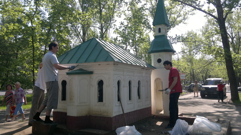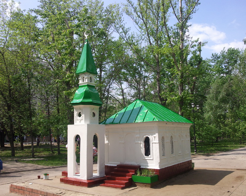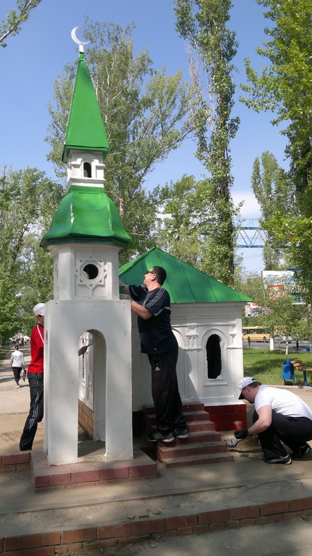 В минувшее воскресенье в Ленинском районе г.Саратова вдоль аллеи по проспекту 50-ти лет Октября прихожанами Соборной мечети был отреставрирован макет мусульманского храма.