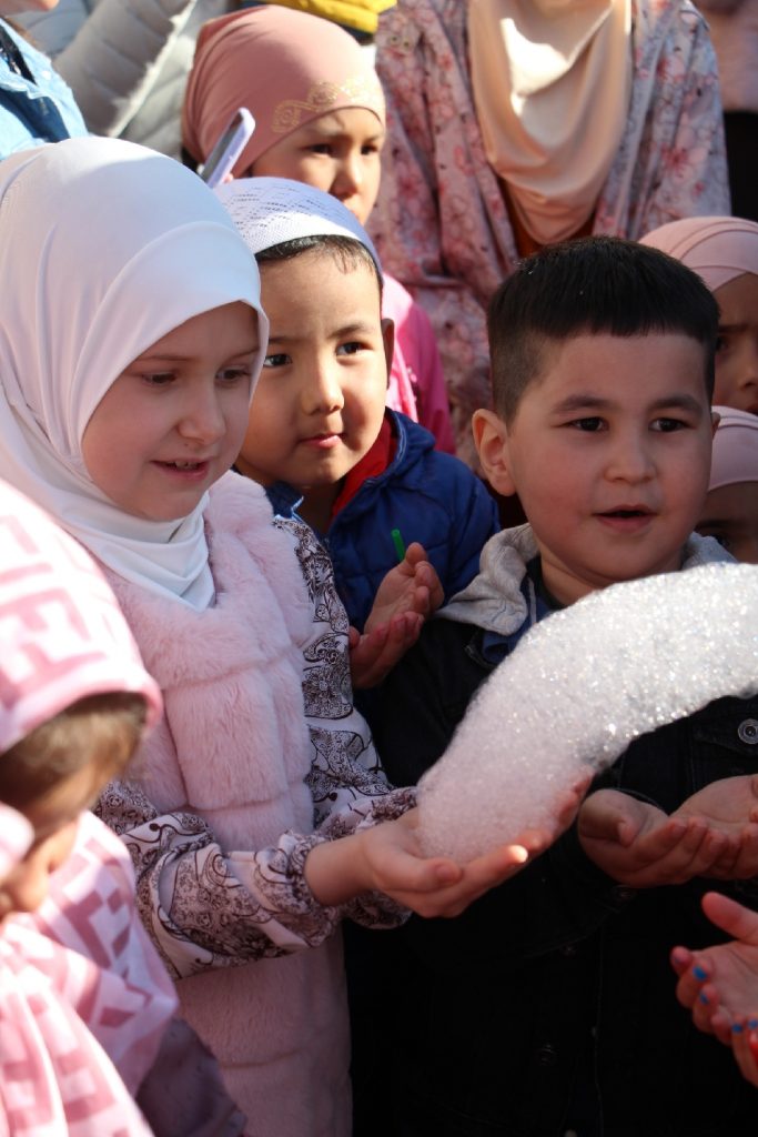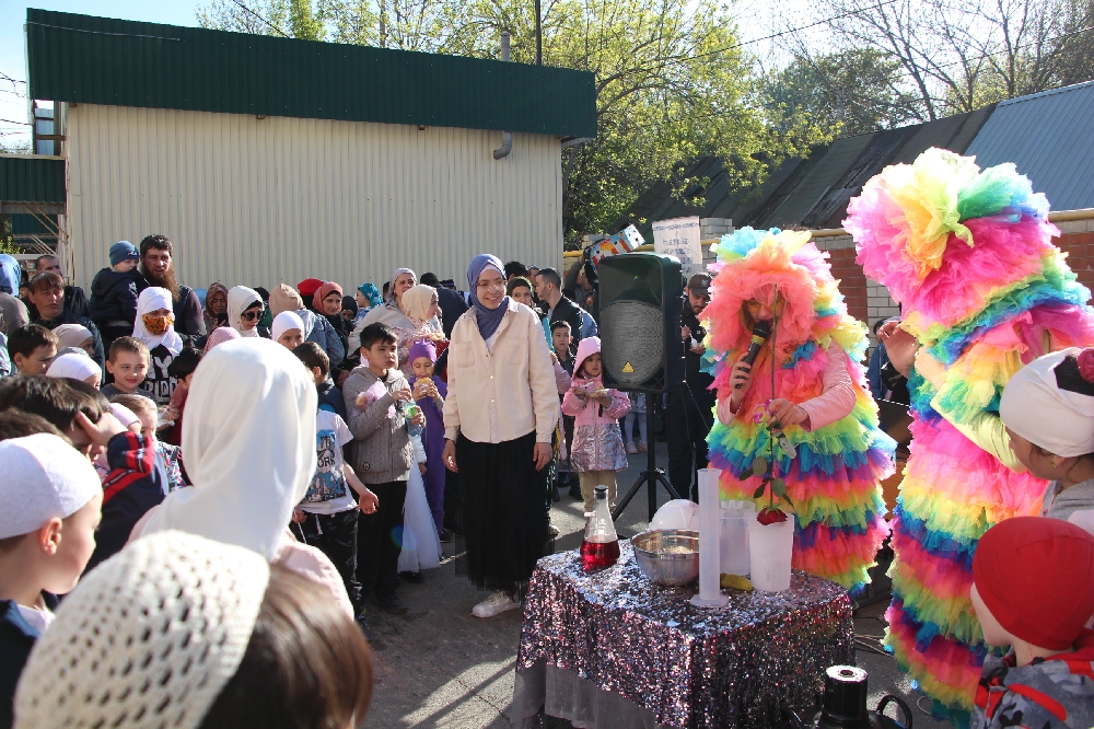 В этот день была подготовлена насыщенная программа. Учащиеся воскресной школы «Мактаб» читали стихи и участвовали в поучительной сценке. В ходе мероприятия работала фотозона и ванди-базар, аниматоры развлекали детей. Их угощали сладкой ватой, мороженым, водой и ароматными казахскими баурсаками.