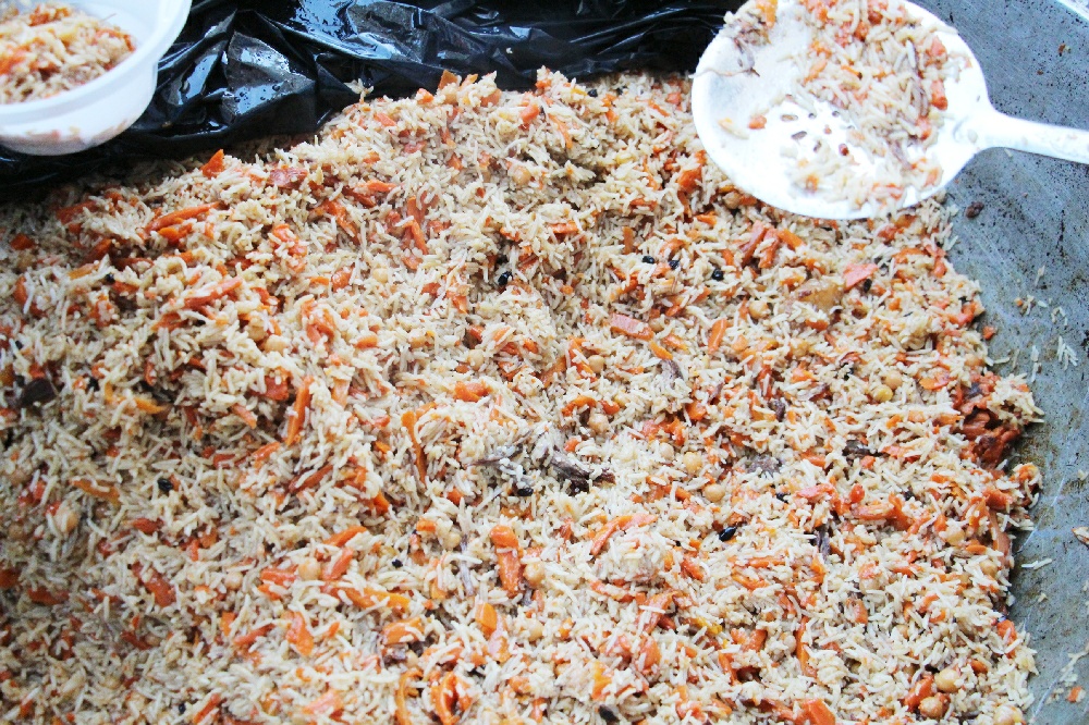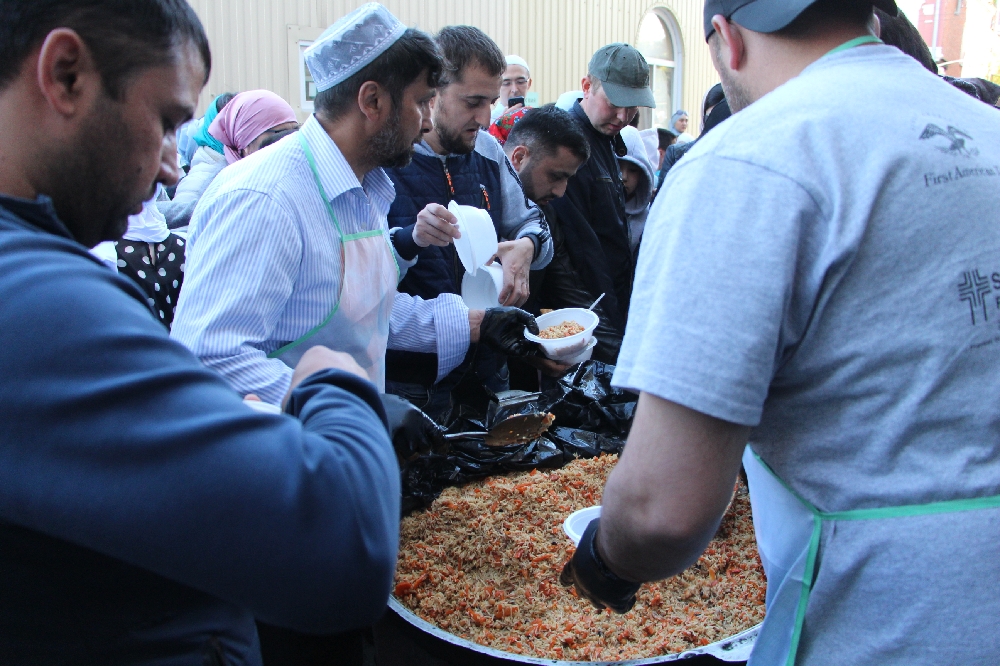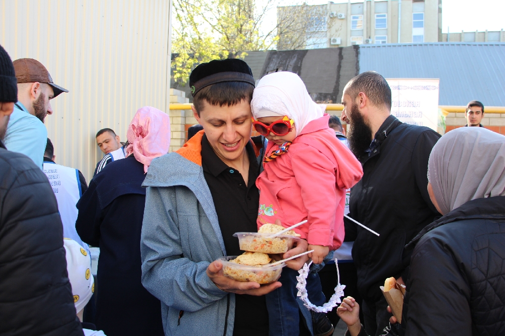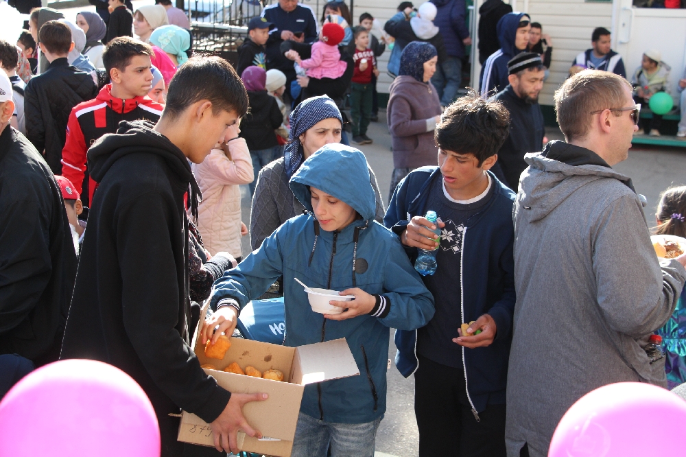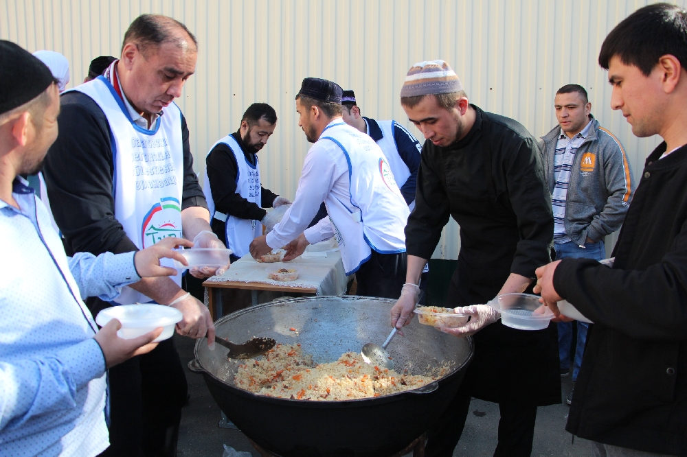 В праздничный день представители национально-культурного узбекского центра «Туран» и таджикской общины угощали всех пловом, также раздавалась национальная выпечка.
