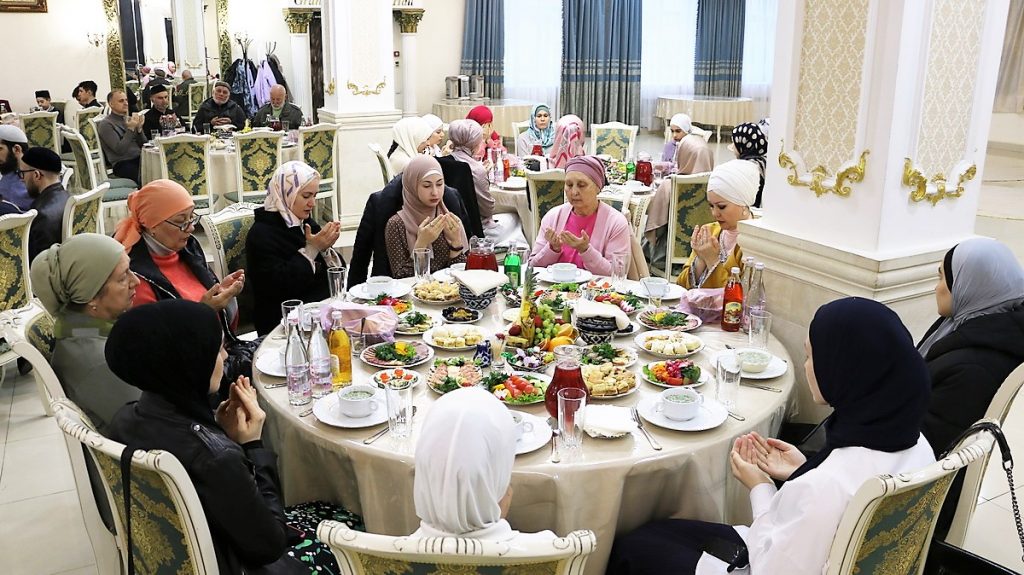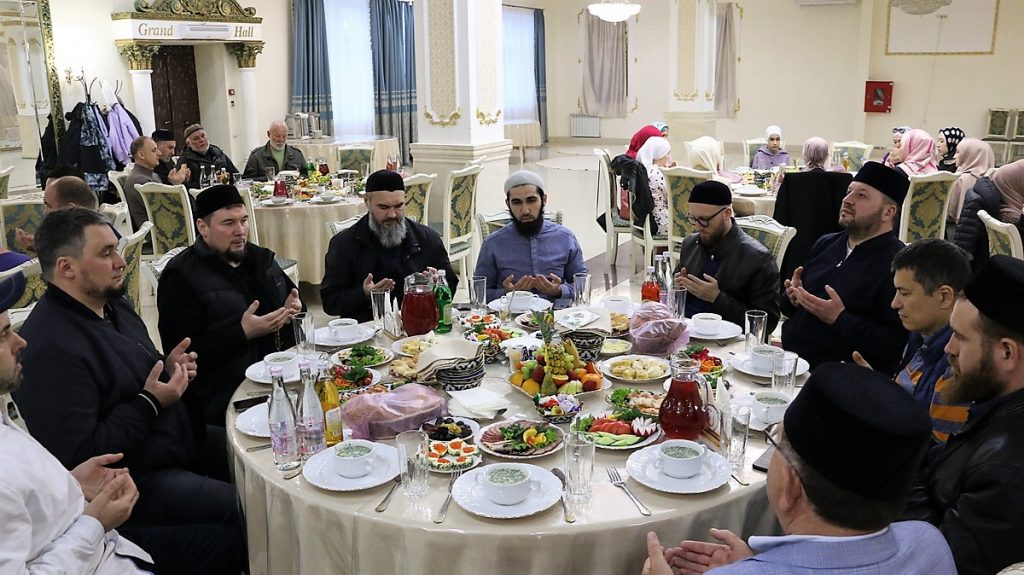 После захода солнца постящиеся прервали уразу и отведали различные блюда.