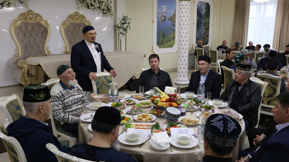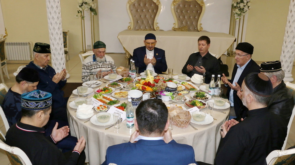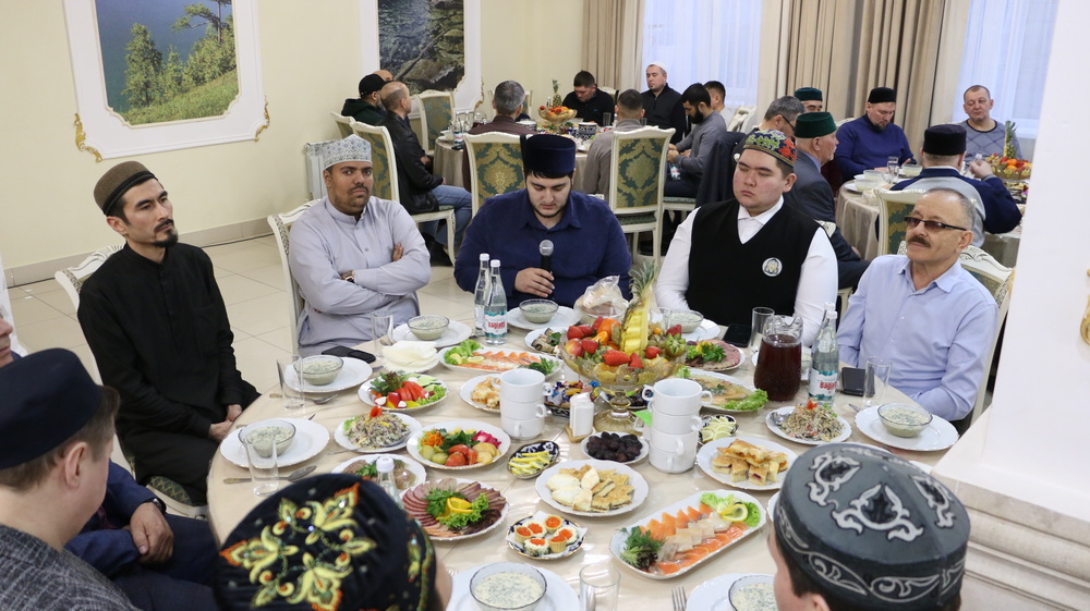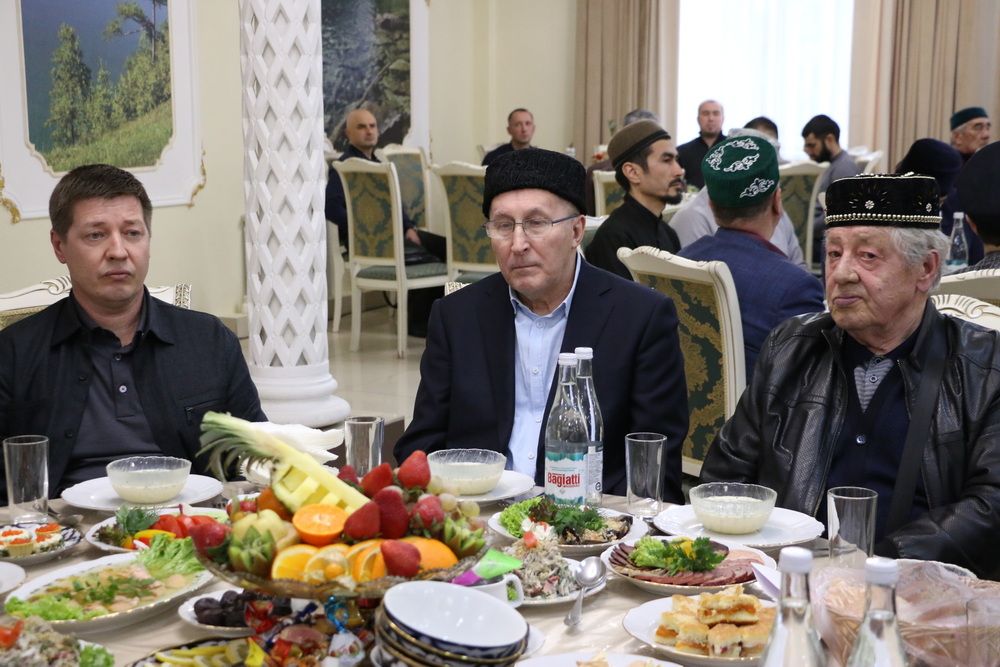 В начале собрания были прочитаны аяты Священного Корана. Затем к гостям вечера обратился член Совета муфтиев ДУМ РФ, глава ДУМ Поволжья Мукаддас-хазрат Бибарсов. Он поблагодарил Рашида-хаджи и Эльмиру-ханум Бикташевых за организацию коллективного ифтара, призвал Всевышнего Аллаха даровать им Свою милость и принять их намерения и добрые дела.