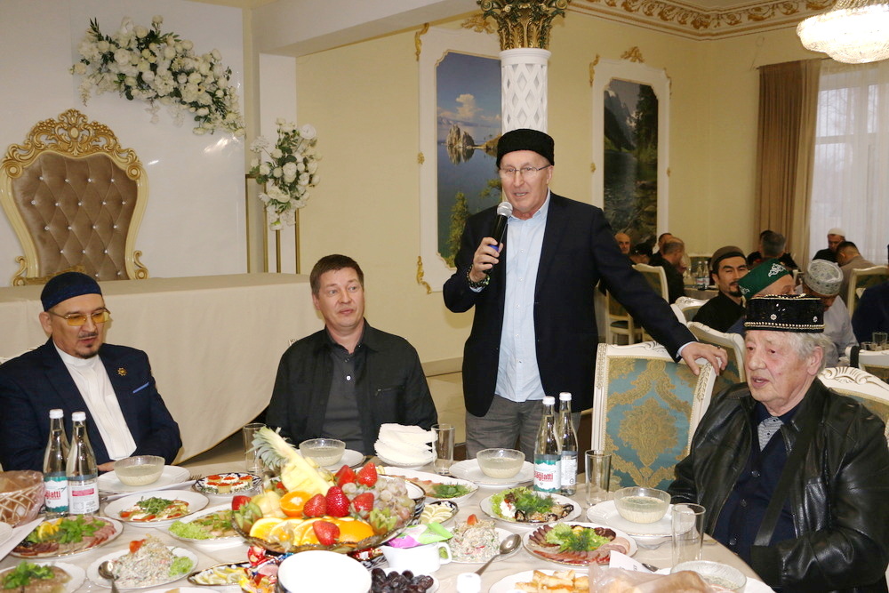 Почетный гость ифтара, известный краевед, первый заместитель председателя Татарской национально-культурной автономии Пензенской области Рашид Алюшев поблагодарил семью Бикташевых за приглашение на ифтар и возможность общения с саратовскими единоверцами. Он напомнил, что многие саратовские татары имеют корни из Сурского края, рассказал об истории татарских сел, текущих исследованиях и написании книг об их богатом наследии.