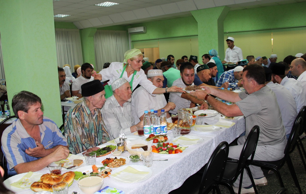 Традиционные встречи в Рамадан проходят в кафе предприятия ЭТЗ «ГЭКСАР» и собирают за одним столом около 200 человек. На коллективные ужины-разговения приглашают сотрудников завода и прихожан Соборной мечети.