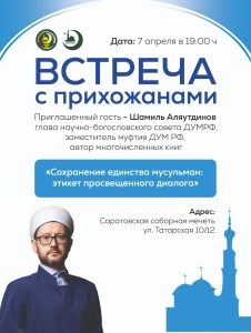 Известный российский религиозный деятель, председатель Совета улемов ДУМ РФ, автор многочисленных трудов Шамиль-хазрат Аляутдинов проведет встречу с прихожанами Саратовской Соборной мечети.