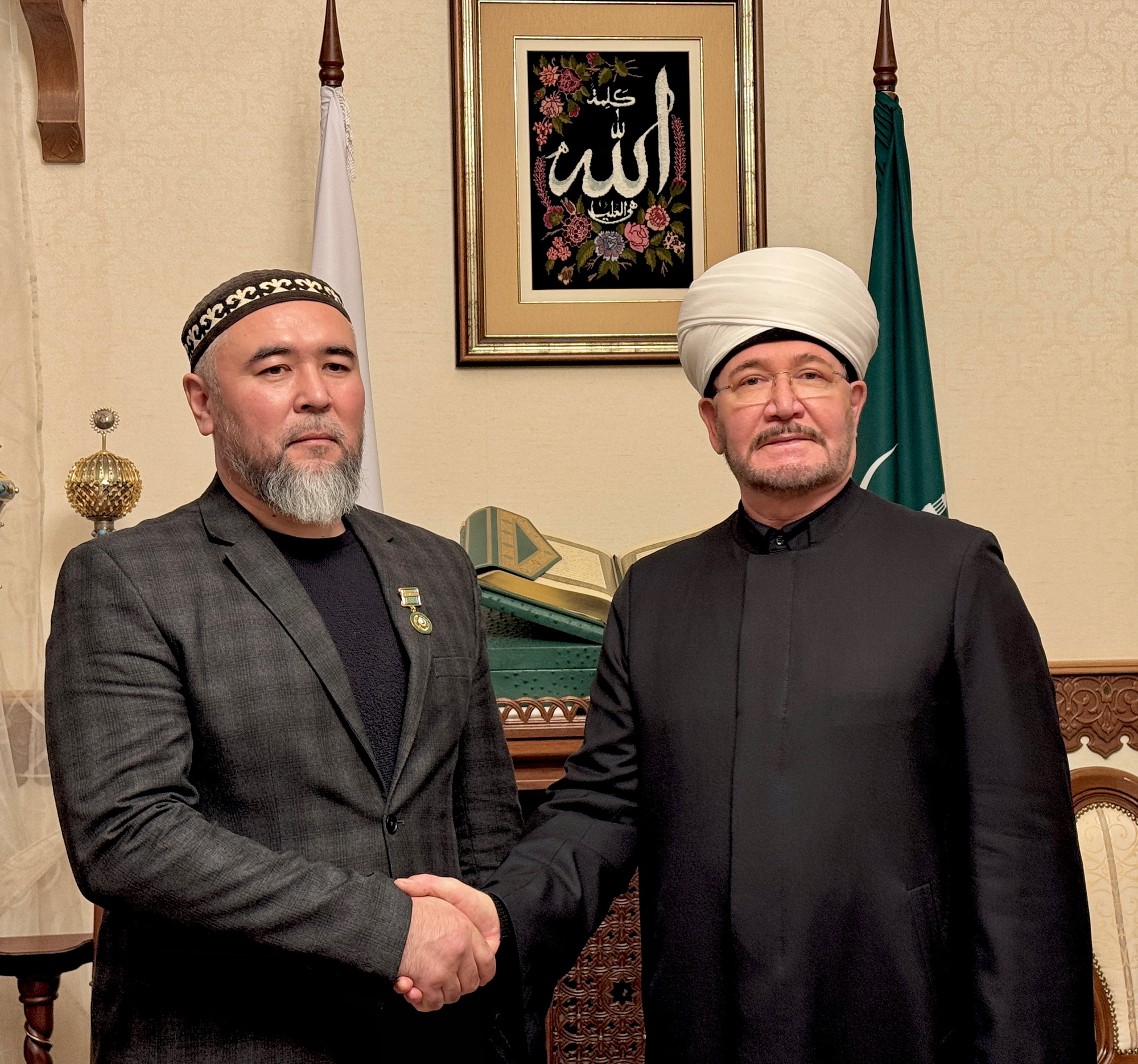 Это произошло 25 ноября 2025 года в резиденции ДУМ РФ в ходе встречи духовного лидера мусульман России с делегацией ДУМ Поволжья во главе с муфтием Мукаддасом-хазратом Бибарсовым. Во встрече также принимали участие первый заместитель председателя ДУМ РФ, муфтий Дамир-хазрат Мухетдинов, руководитель Департамента по внутренней политике ДУМ РФ Наиль-хазрат Шакиров, руководитель коранического центра «Зейд бин Сабит» Ильяс-хазрат Ильясов и др.