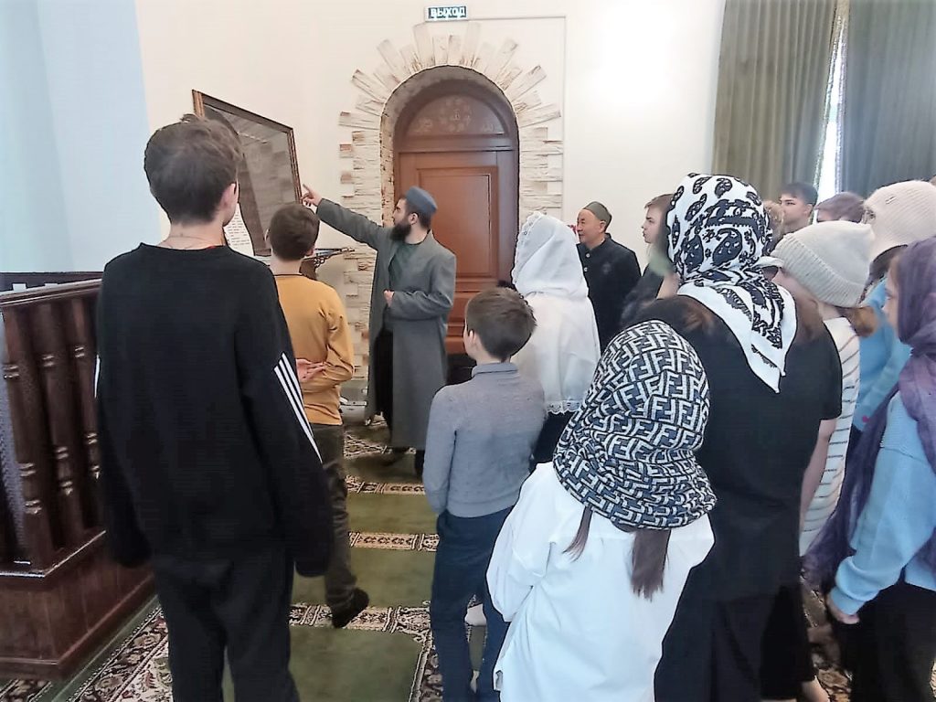 Имам-хатыб Мухаммад-хазрат Хутиев провел для ребят экскурсию по мечети, рассказал о ее истории и внутреннем убранстве. Также ребята смогли познакомиться с основными аспектами исламской религии.