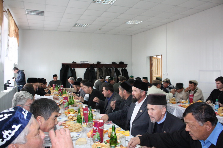 Торжественное мероприятие завершилось праздничным обедом, организованным местными последователями Ислама в столовой профессионального училища п. Советский. Всех гостей угощали национальными блюдами мусульманских народов, проживающих в Дергачевском районе, а муфтию региона одним из местных единоверцев был вручен памятный подарок.