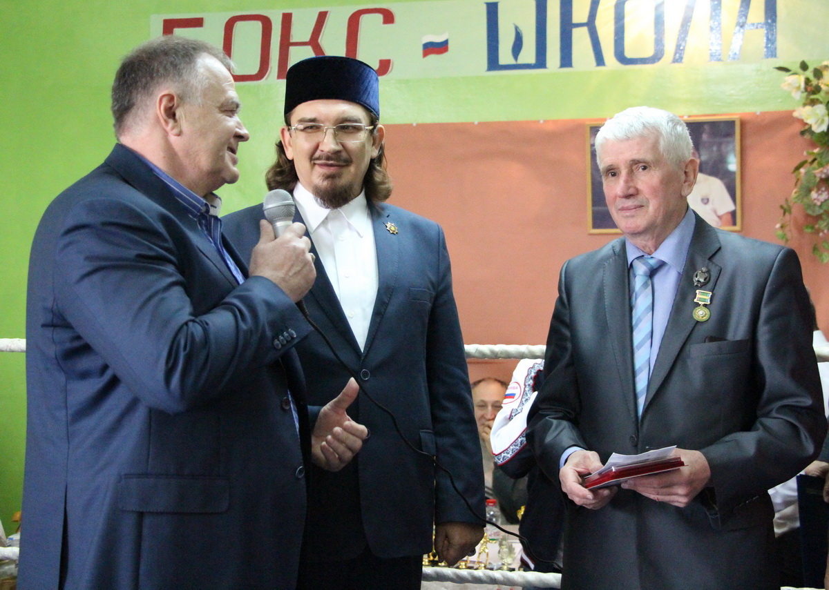 Кроме этого, Мукаддас-хазрат заметил, что в этом году основателю и главному тренеру «Барса», заслуженному работнику физической культуры РФ Раису Фаткулину исполняется 70 лет. Заслуги Раиса Сырачевича, который более 40 лет занимается развитием саратовского бокса, прививает детям любовь к этому виду спорта, были отмечены Советом муфтиев России. В торжественной обстановке Фаткулину была вручена специальная медаль. «За большой вклад в духовно-нравственное воспитание подрастающего поколения», — подчеркнул Мукаддас-хазрат Бибарсов.
