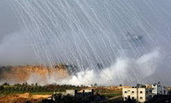 На фото: «Самооборонялись» сионисты, используя белый фосфор…