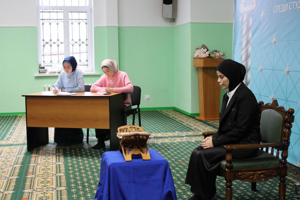 Более 20 мусульманок также читали наизусть «Аль-Фатиху», суры «Аш-Шамс» и «Ан-Нас». Знание текста и правильность произношения оценивали преподаватели центра «Зейд бин Сабит» Амина-устаза Дмитриенко и Зарема-устаза Эльсаева.