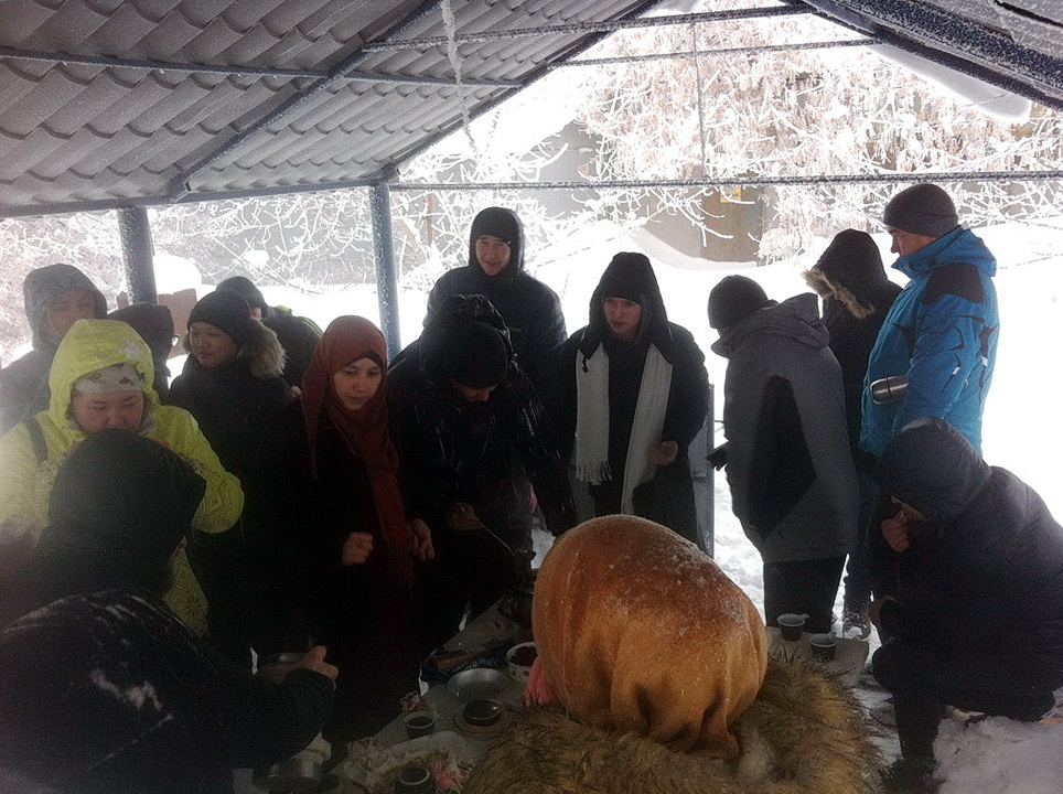 После часа активного отдыха студенты и преподаватели медресе устроили пикник. Горячий чай с тортом, печеньями и сладостями подвели итог незабываемой прогулки и теплого общения единоверцев.