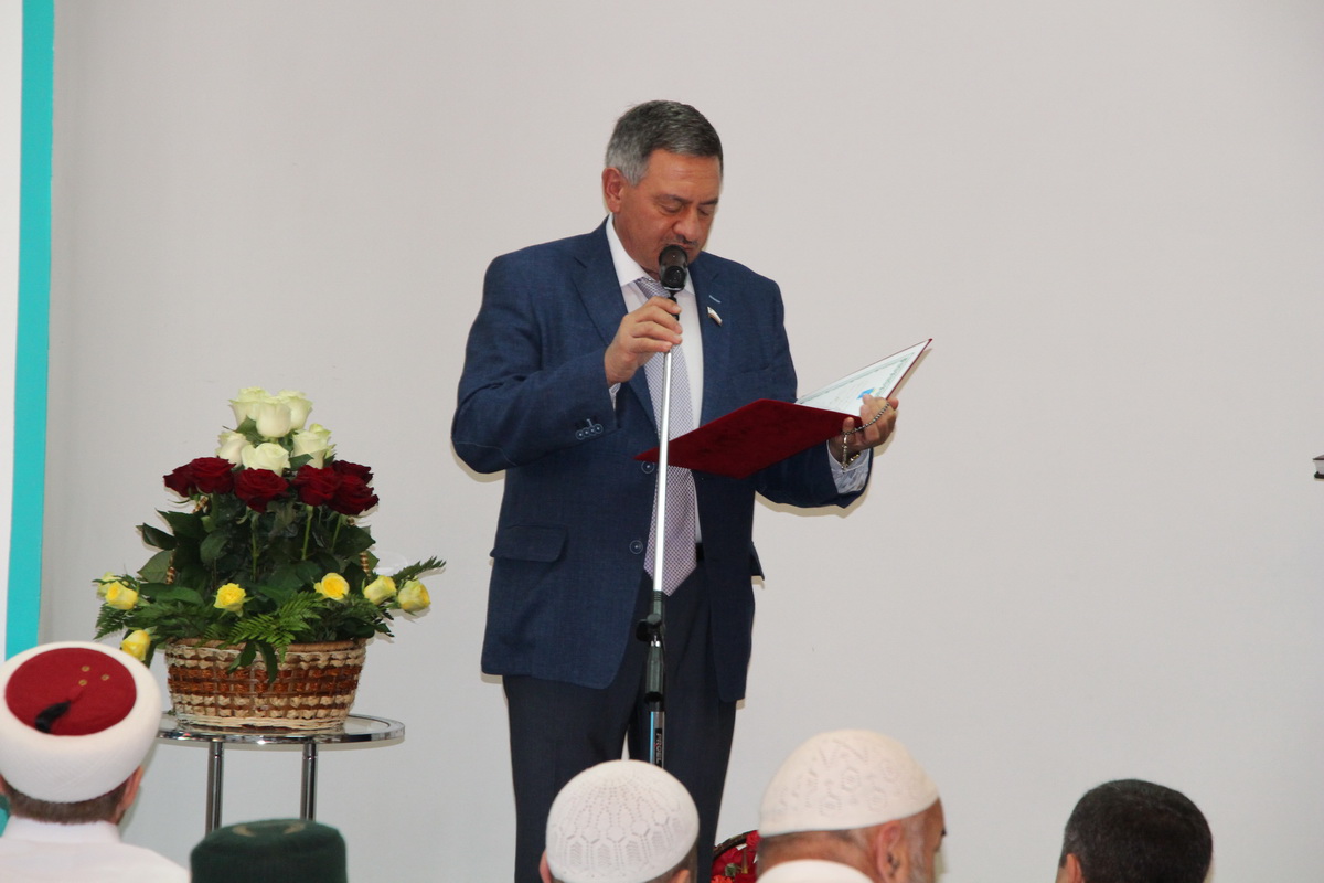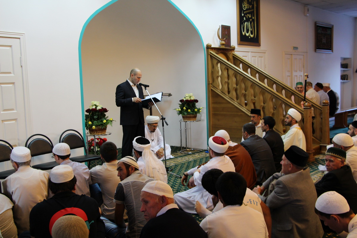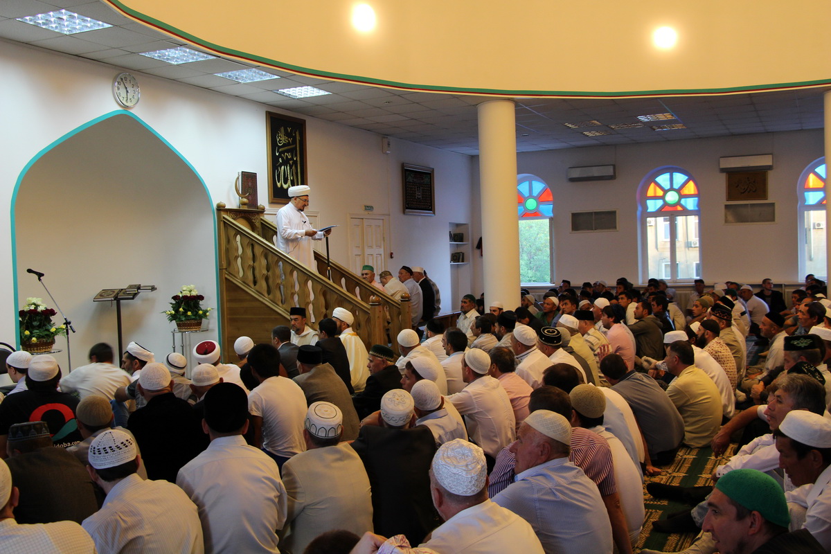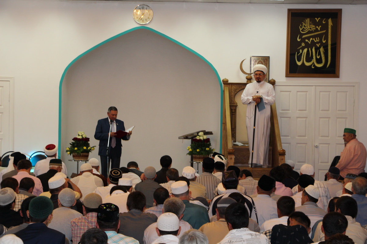После восхваления Аллаха к собравшимся обратился муфтий Мукаддас-хазрат Бибарсов. Поздравив всех с окончанием Рамадана, он подчеркнул, что в Благословенный месяц началось ниспослание последнего Откровения Аллаха всему человечеству. Мукаддас-хазрат также отметил, что верующие всего мира с нетерпением ждали начала Рамадана и наслаждались его каждым днем. Он привел изречение пророка Мухаммада (мир ему), в котором сказано, «если бы рабы Аллаха знали, сколько благ несет этот месяц, они бы просили Аллаха продлить его на год».