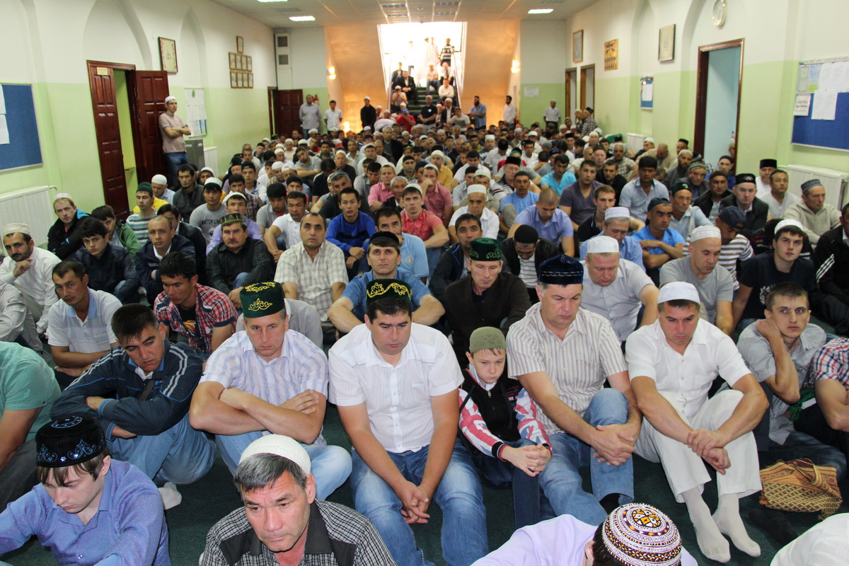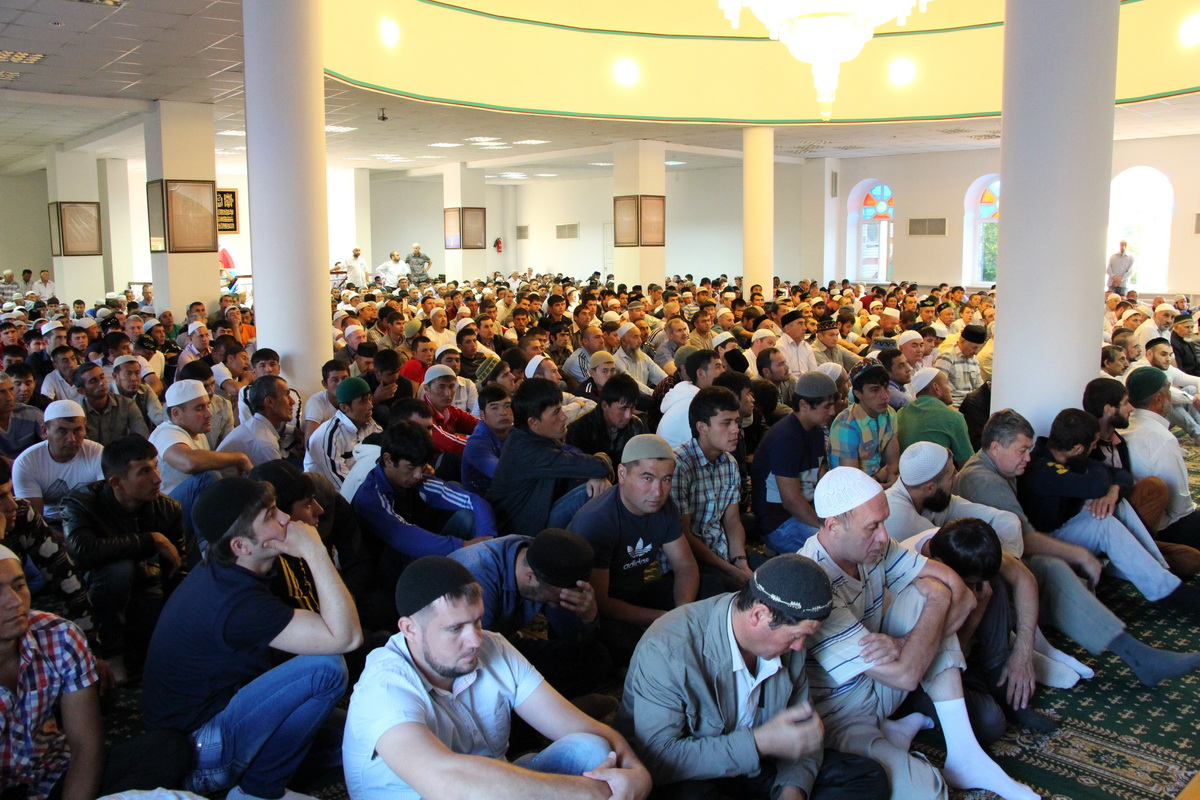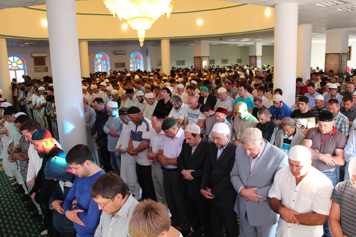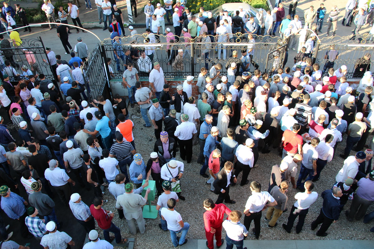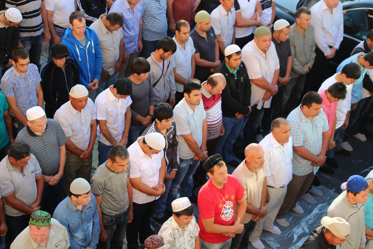 С раннего утра на близлежащих улицах к мусульманскому храму города было трудно найти свободное место для парковки автомобилей. Еще до восхода солнца толпы людей спешили в мечеть, чтобы вместе с единоверцами разделить радость завершения Рамадана. Уже на подходе их встречали приятные голоса хафизов Корана, которые на протяжении всего месяца украшали Пост своим чтением Книги Аллаха.