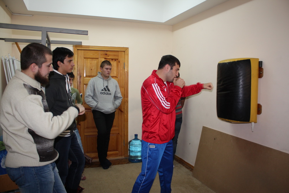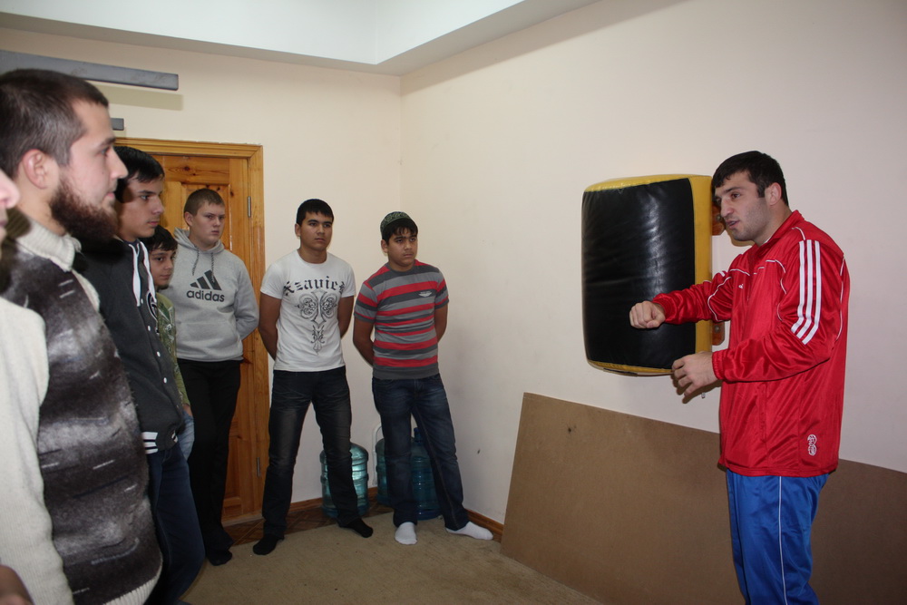 Вчера занятия подростковой группы саратовского медресе «Шейх Саид» вновь посетил трехкратный обладатель Кубка мира по кикбоксингу, призер чемпионата МВД России по рукопашному бою Даци Дациев. На урок он пришел вместе с 15-летним братом, чемпионом Дагестана по ушу-саньда Гимбатом Исмаиловым.