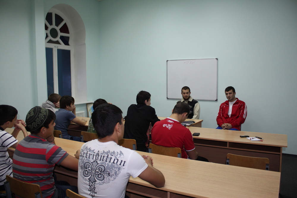 В ходе беседы с кикбоксером была проведена викторина среди учащихся медресе на знание Священного Корана и жизни пророка Мухаммада (мир ему). Правильно ответившие на вопросы получили от Дациева сувениры из Турции.