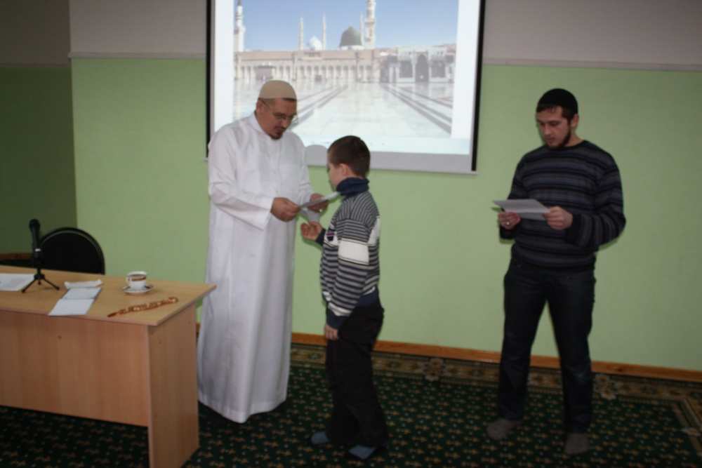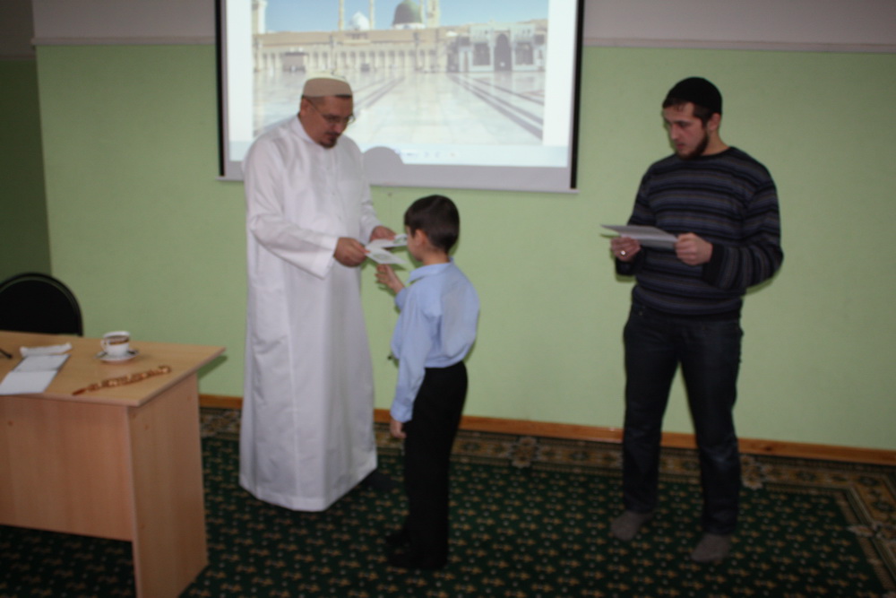 В минувшее воскресенье, 29 января, в саратовском Исламском комплексе муфтий Саратовской области Мукаддас-хазрат Бибарсов торжественно вручил учащимся детского лагеря их вторые стипендии в размере 500 рублей.