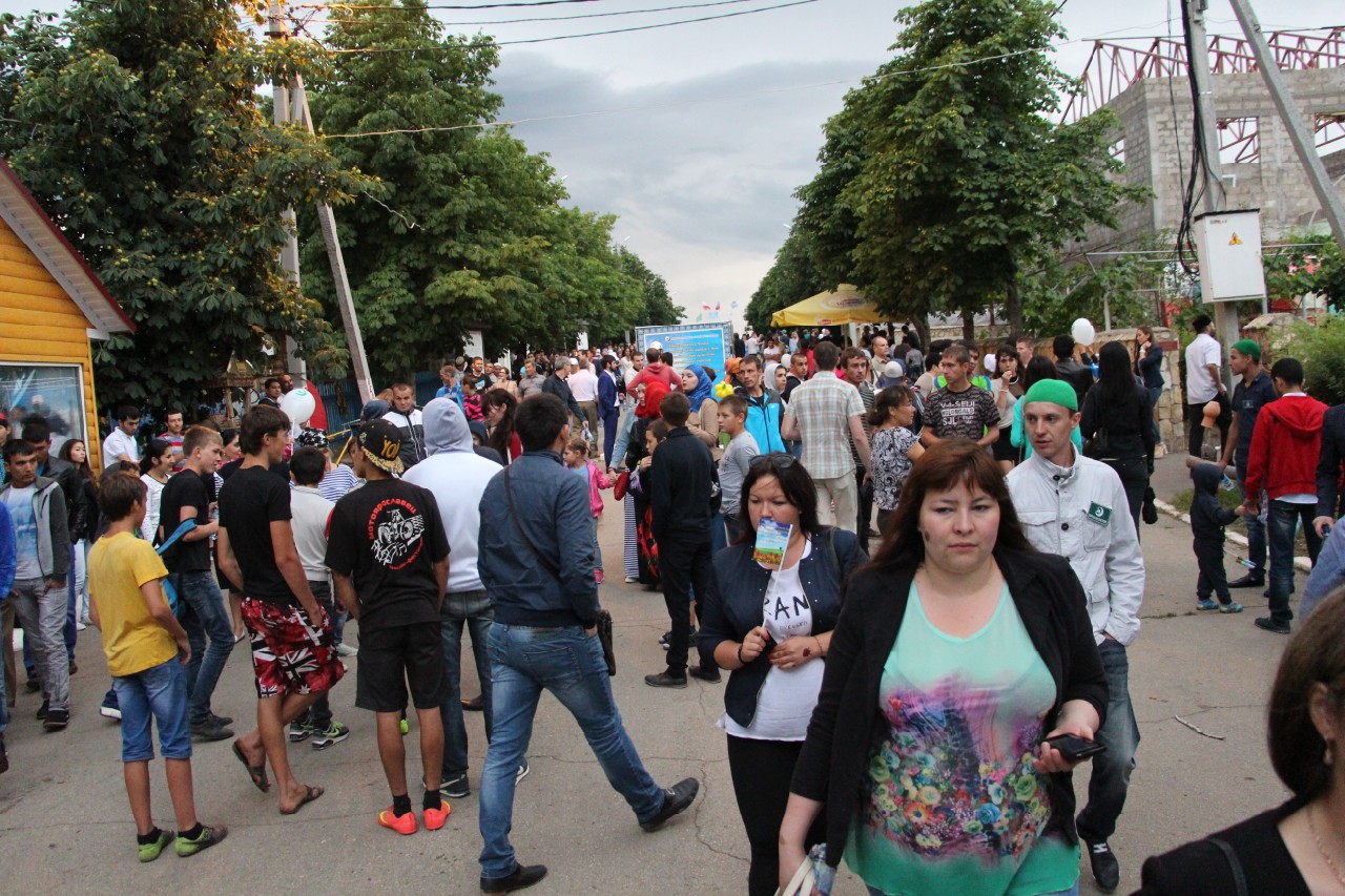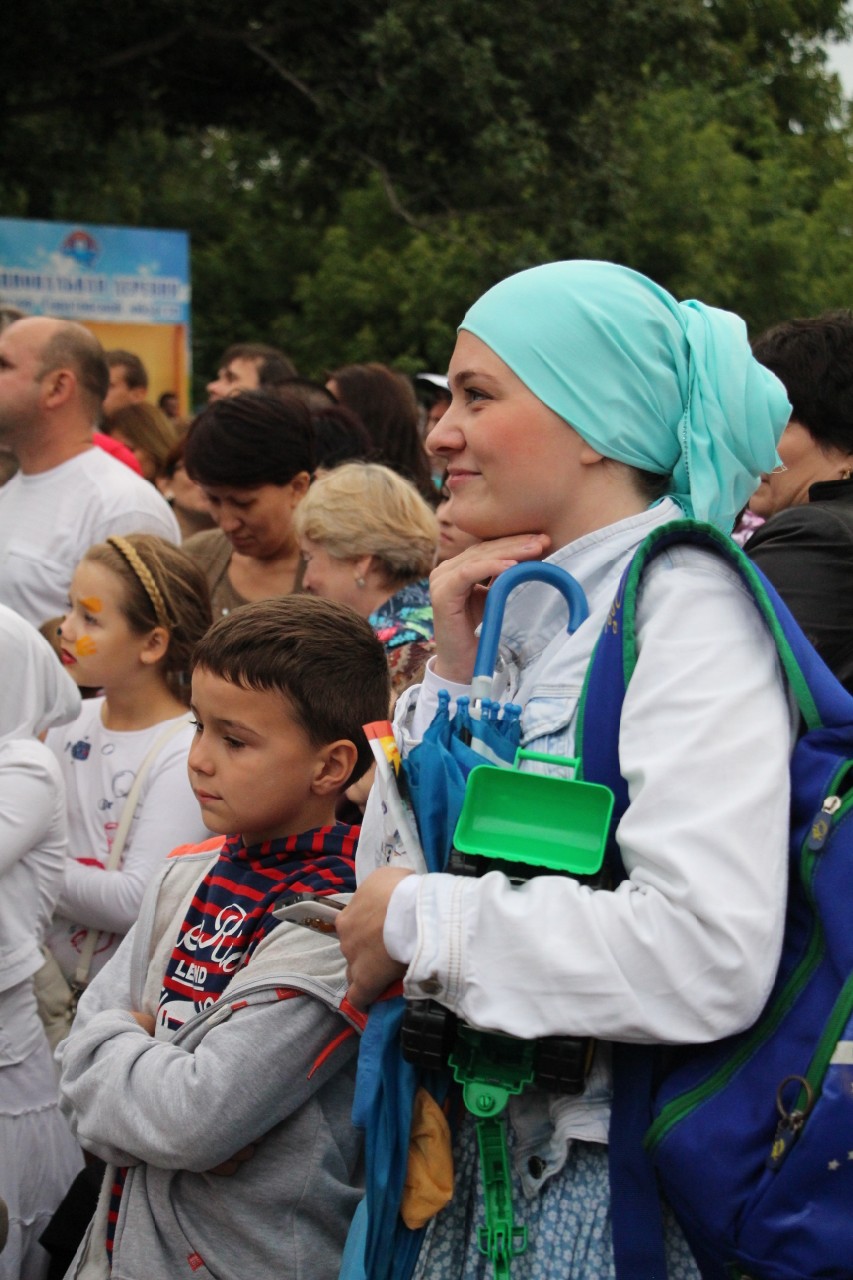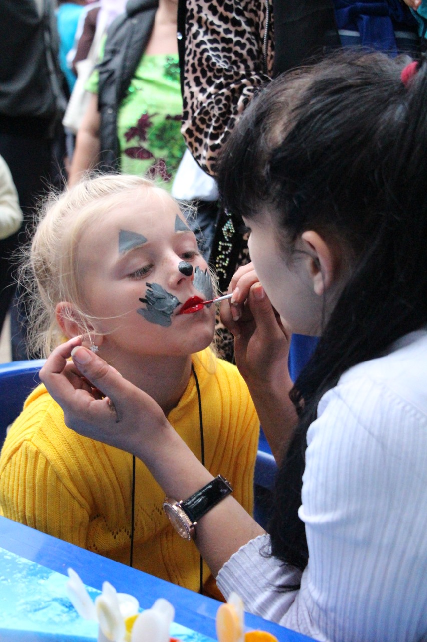 Тут же, рядом со сценической площадкой, ребята, получив в подарок красочные рисунки аквагрим на руках и лицах, бежали хвастаться своим новым украшением к родителям. Другие их сверстники, сидя на плечах у отцов и держа в руках праздничные шарики и яркие флажки, сражались ими словно на шпагах, заливаясь от смеха.