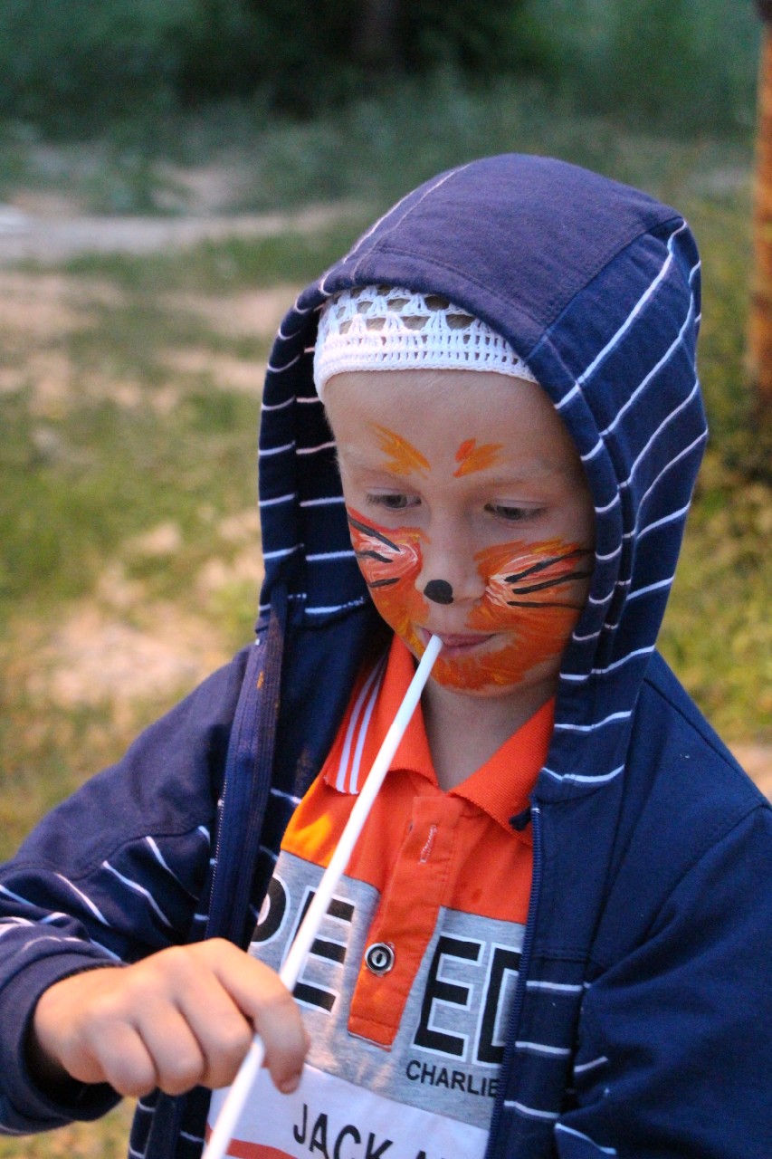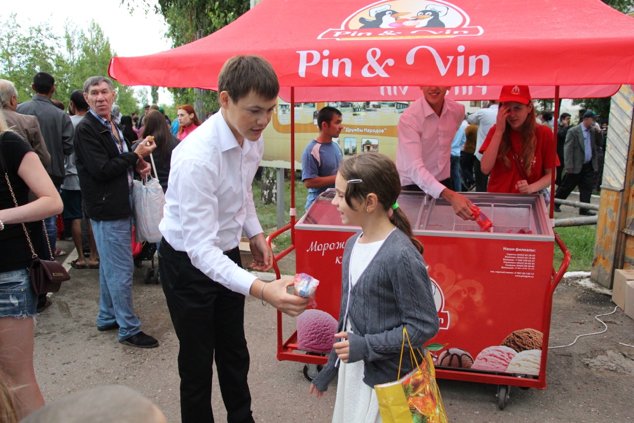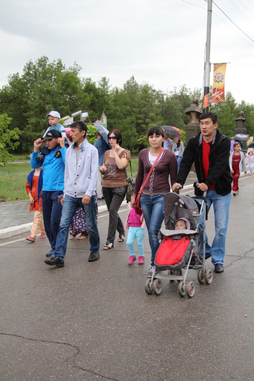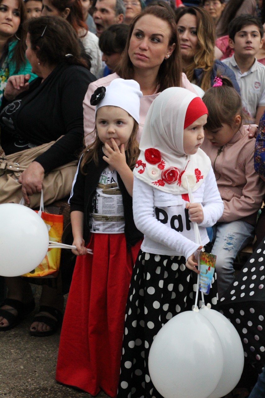 Тут же, рядом со сценической площадкой, ребята, получив в подарок красочные рисунки аквагрим на руках и лицах, бежали хвастаться своим новым украшением к родителям. Другие их сверстники, сидя на плечах у отцов и держа в руках праздничные шарики и яркие флажки, сражались ими словно на шпагах, заливаясь от смеха.