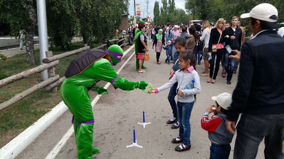 На всей территории Национальной деревни детишек также развлекали приветливые пираты и индейцы, добрые принц и принцесса из сказки «Тысяча и одна ночь», мультипликационные герои «Черепашки-ниндзя» и другие персонажи. С ними можно было сделать памятную фотографию и поиграть в интересные игры.