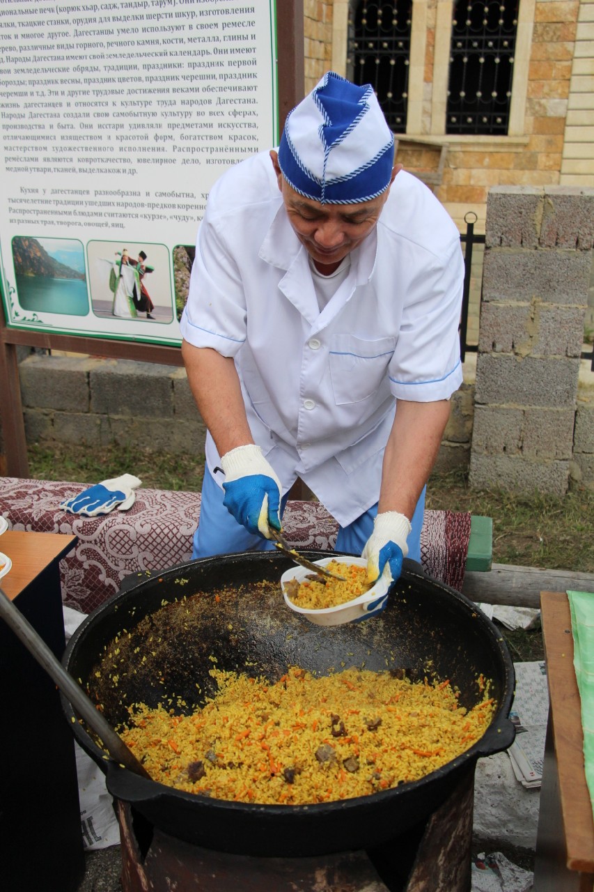 Но самым долгожданным для посетителей стал изысканный плов, приготовленный по специальному восточному рецепту. На его ароматный и манящий запах выстраивалась живая очередь более чем из пятидесяти человек на каждой из двадцати точек раздачи этого блюда. А в некоторых местах повара, окруженные плотным кольцом, едва успевали в две руки отдавать наполненные тарелки.