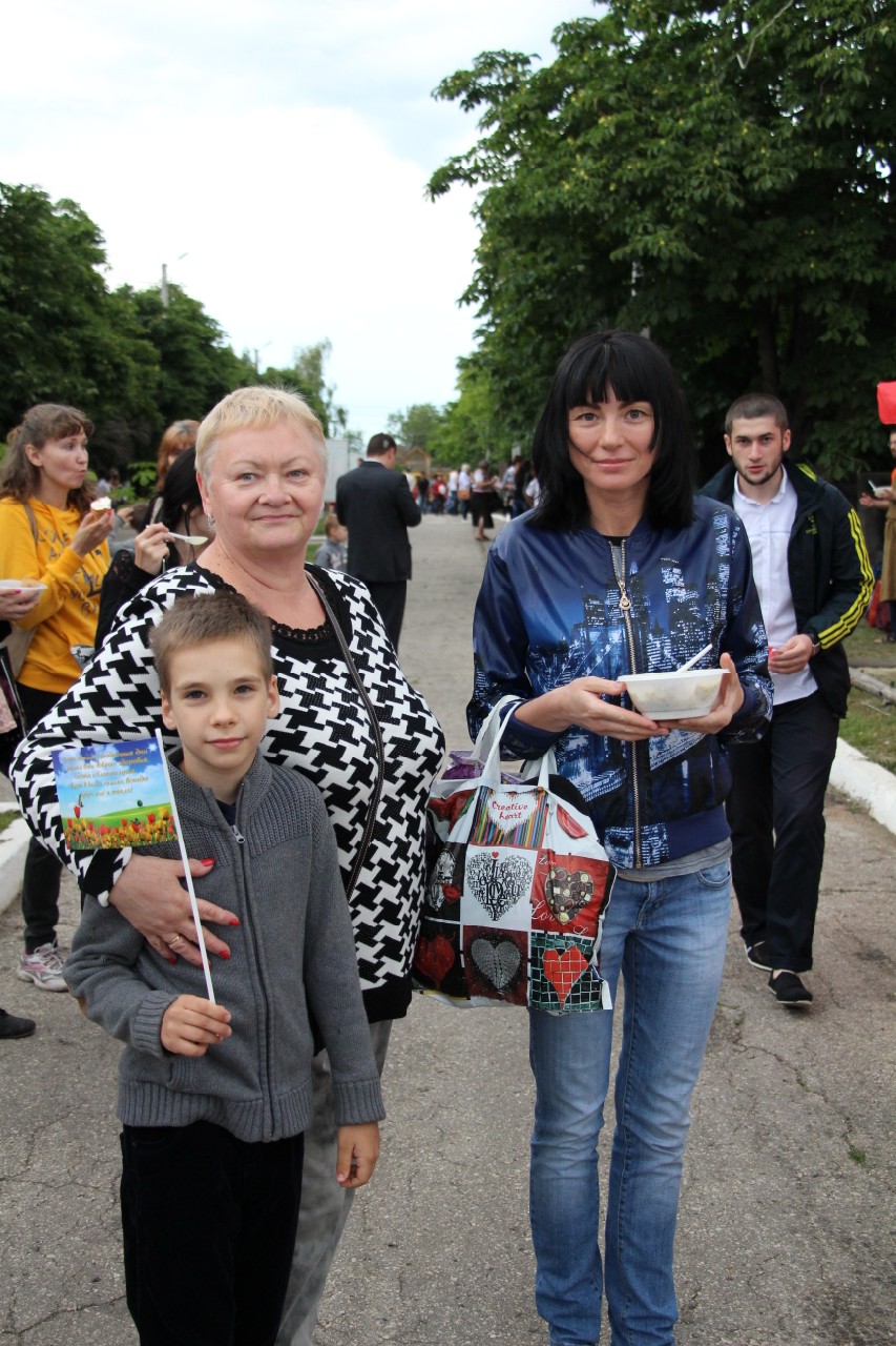 «Очень вкусно, хороший у вас праздник, — делится впечатлениями женщина в годах Марина, — немного замерзла от ветра, а плов с чаем — в самый раз, согрелась».