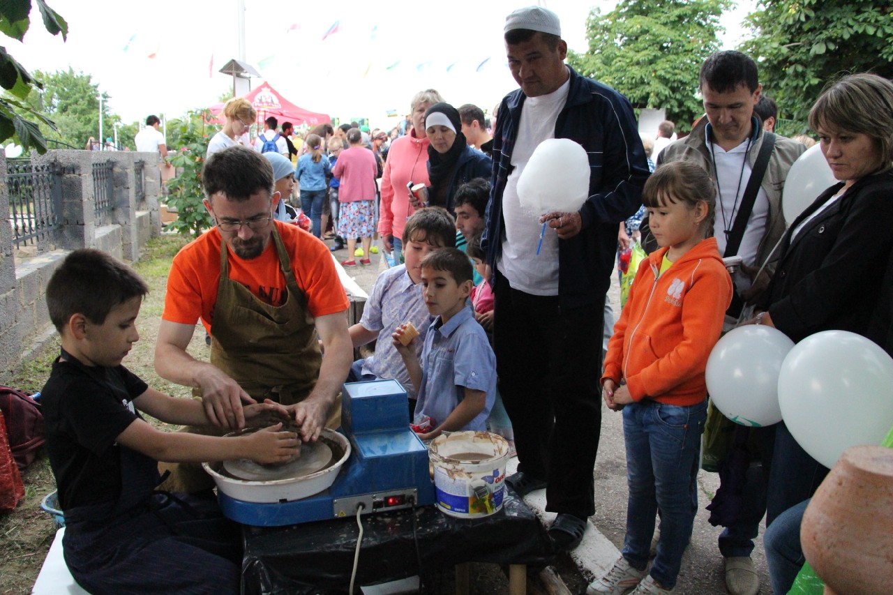 А на одной из улиц деревни располагалась настоящая гончарная мастерская. Здесь любой желающий мог своими руками под руководством мастера изготовить сосуд из глины и забрать его себе в подарок.