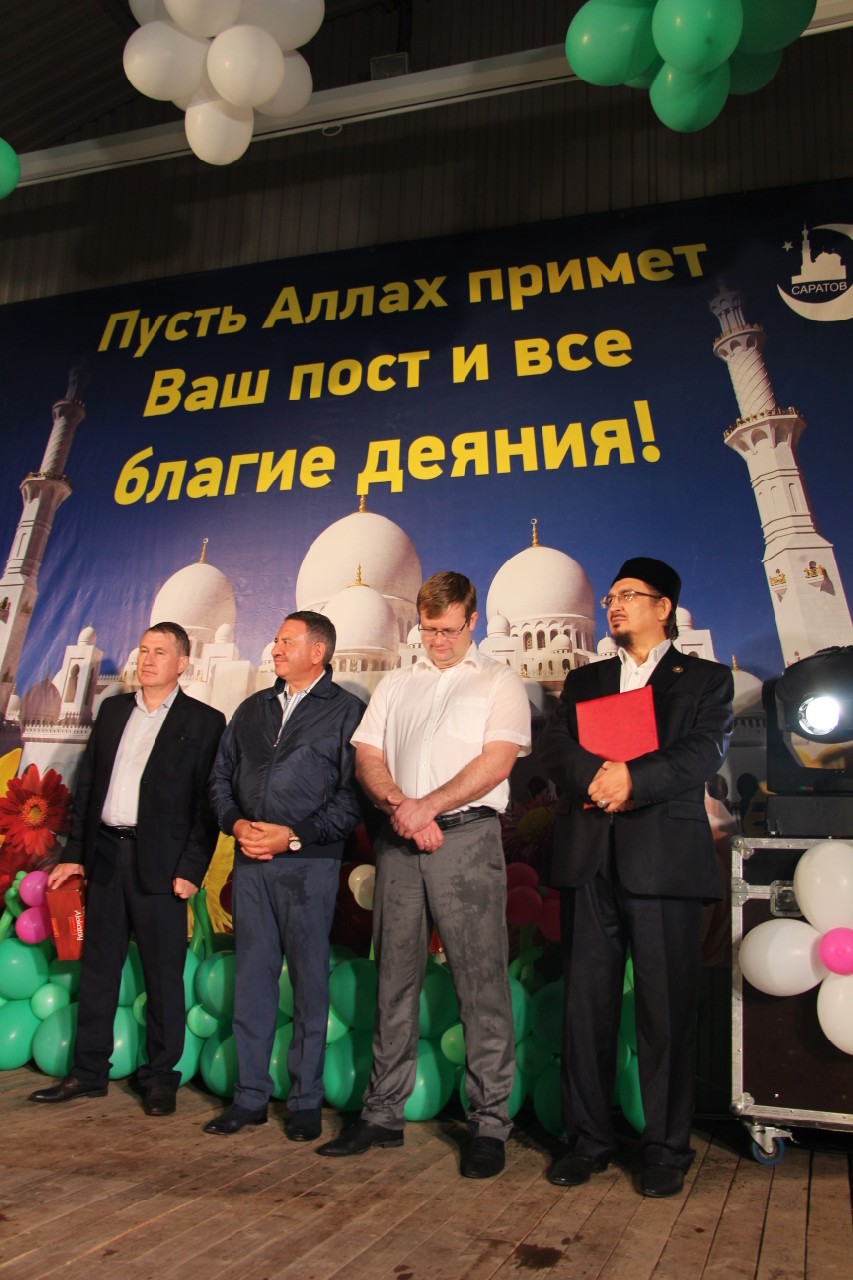 В свою очередь муфтий Саратовской области Мукаддас-хазрат Бибарсов поздравил всех с большим праздником, пожелал блага и милости Всевышнего.