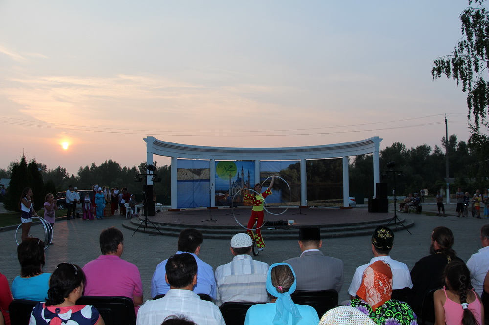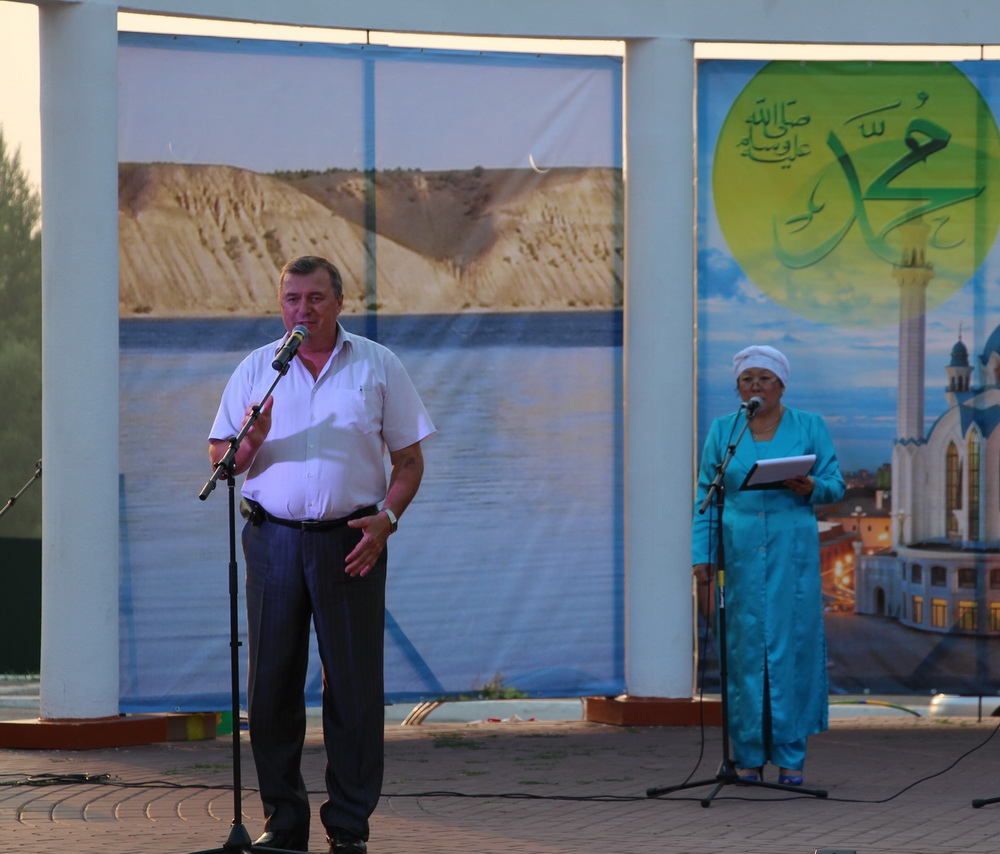 Позже начался концерт с участием национальных коллективов. Ведущие предоставили слово главе ДУМСО Мукаддас-хазрату Бибарсову. Он выразил свою признательность и, обратившись к горожанам, поздравил их с Ураза-байрамом, отметив некоторые особенности завершившегося месяца.