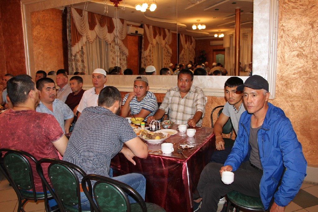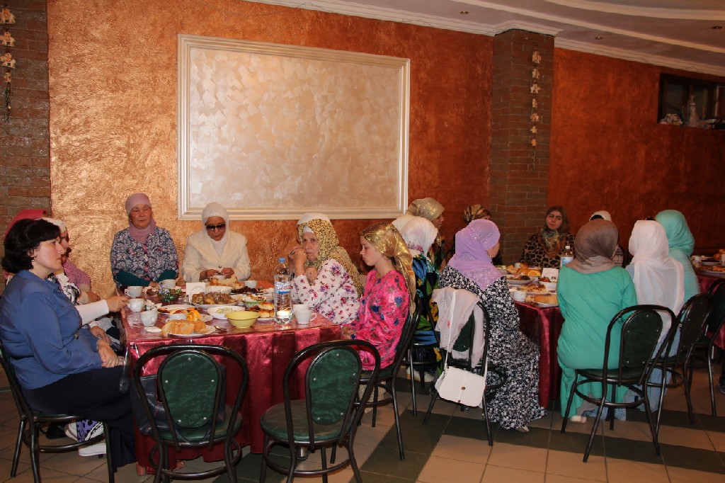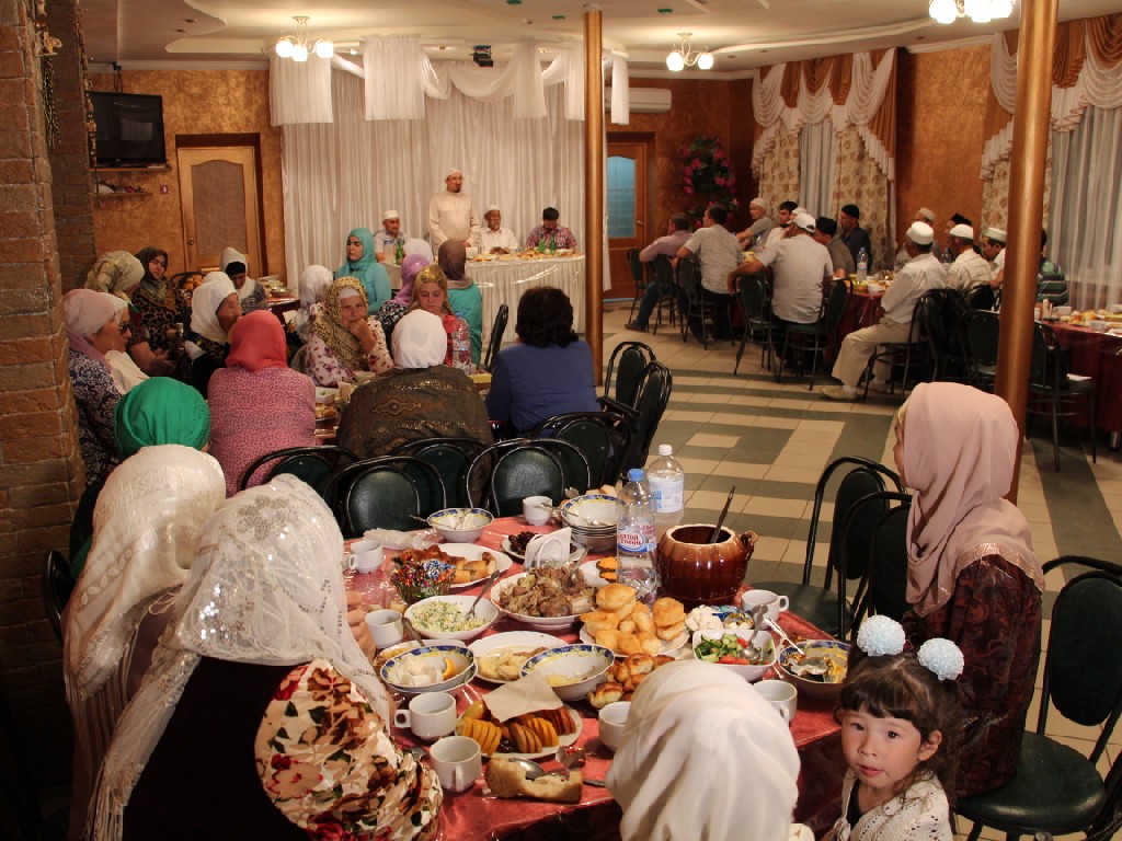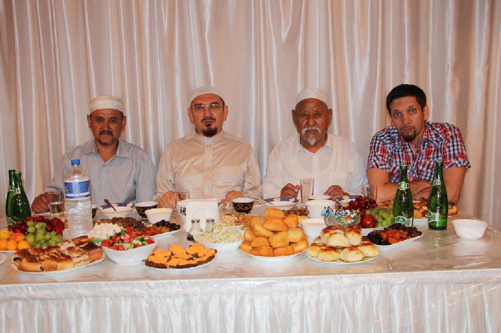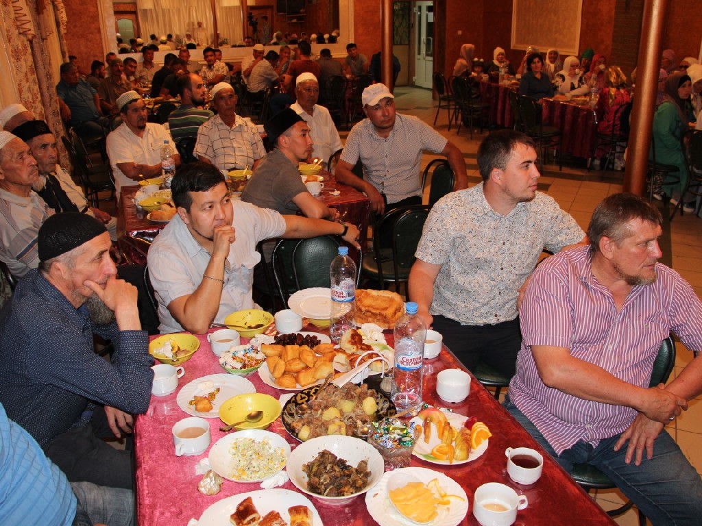 До захода солнца в Соборной мечети постящиеся читали, слушали и размышляли над аятами Священного Корана. С первыми звуками призыва на Магриб-намаз они вкусили финики и воду, после чего совершили коллективную молитву и направились в соседнее кафе. Здесь их уже ждали накрытые столы с праздничными блюдами мусульманских народов.