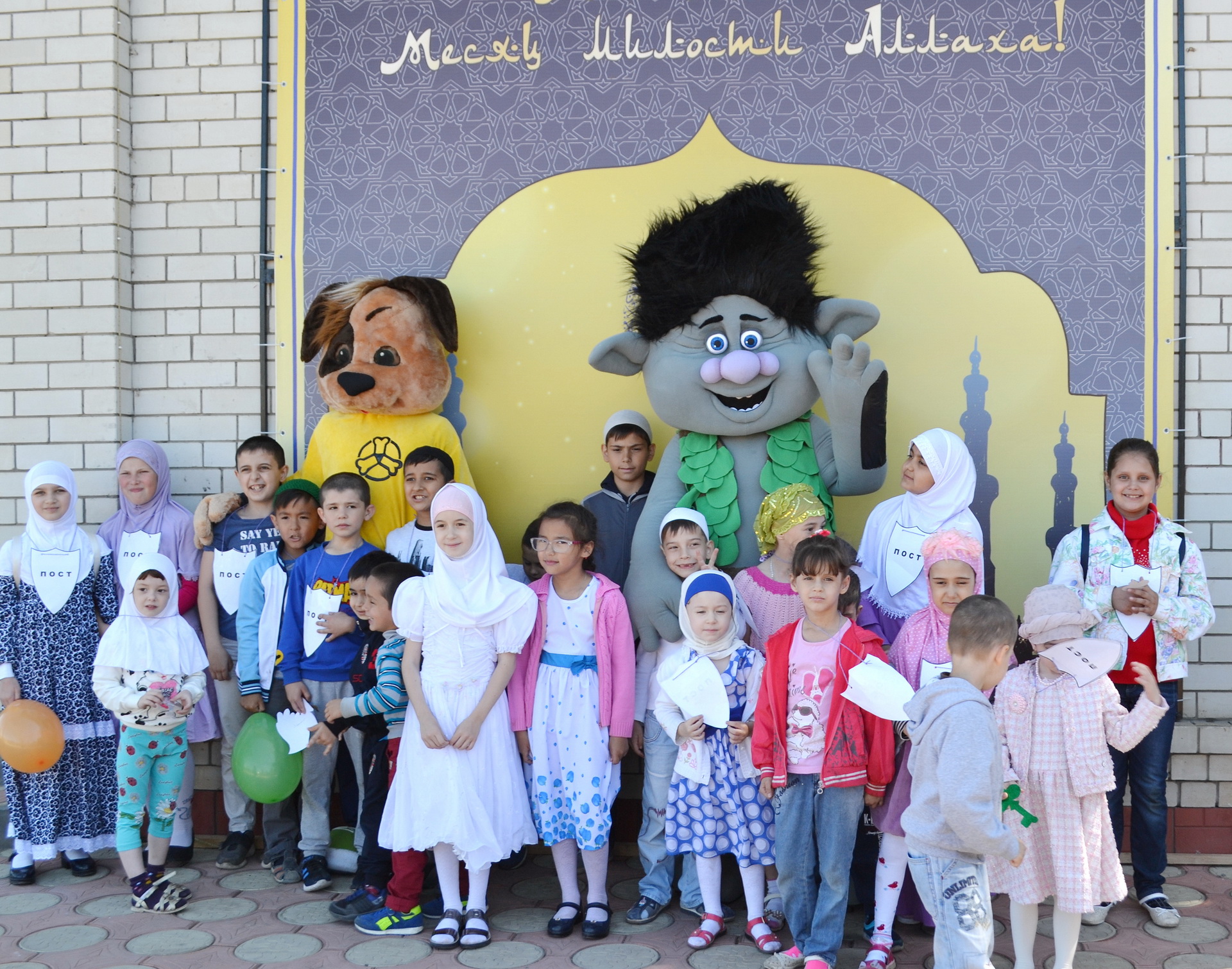Тем временем на улице юных мусульман ждали аниматоры и сладкие угощения.