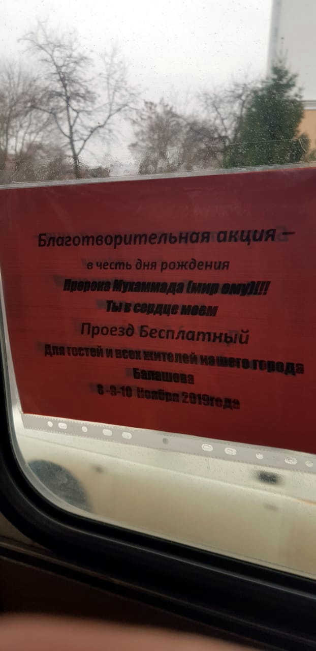 Как сообщил имам-мухтасиб Балашовского района Ильяс-хазрат Юнкин, в этом году местная мусульманская община при поддержке неравнодушных людей оплатила работу одного из городских автобусов. Маршрут №18 проходит по центральным улицам, в том числе мимо Соборной мечети.