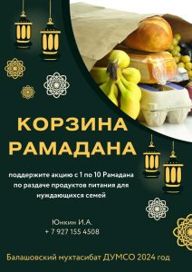 С началом Благословенного Рамадана в Балашовском мухтасибате стартовала ежегодная благотворительная акция «Корзина Рамадана».