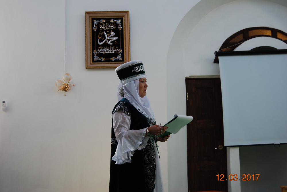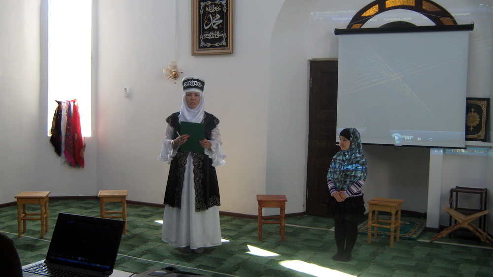 В начале мероприятия воспитанницы местной воскресной школы прочли суры из Священного Корана. После этого в традиционном казахском костюме с приветственным словом выступила активистка «Исламии» Ардаксина Адильдереева. По её словам, образ мусульманки должен быть прекрасным как внешне, так и духовно.