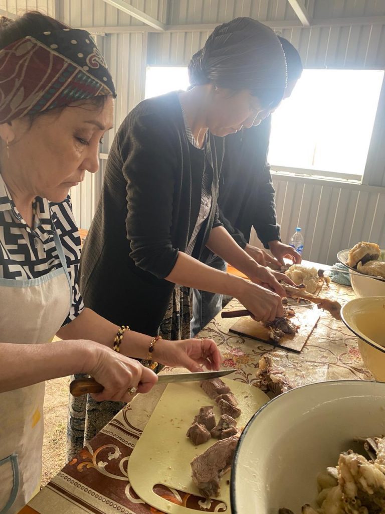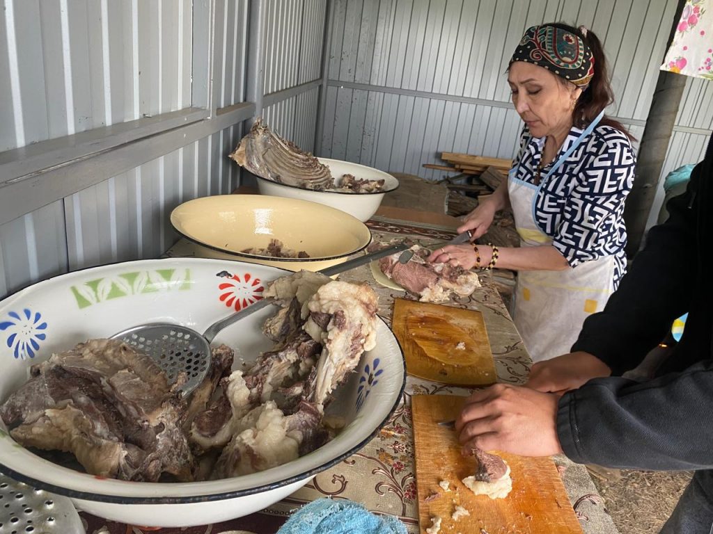Как рассказал председатель махалли Арман Жумашев, по традиции мусульмане совершили заклание барашка и приготовили угощение — шурпу, бешбармак, а также другие национальные блюда.