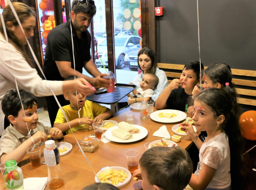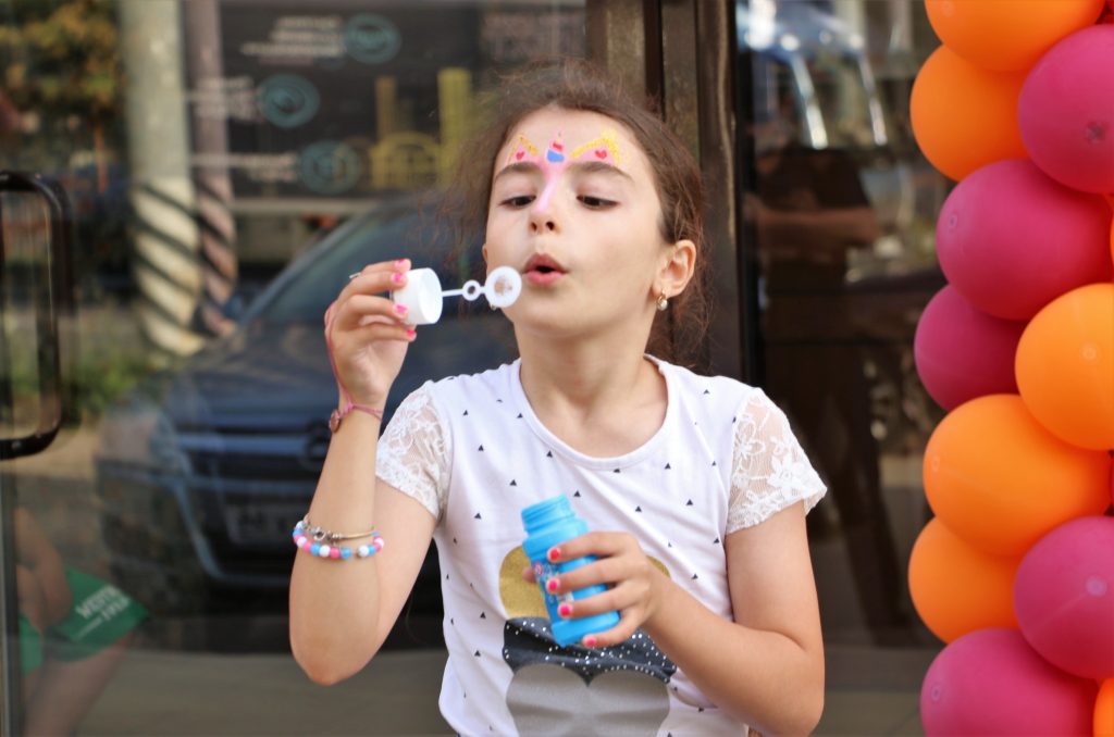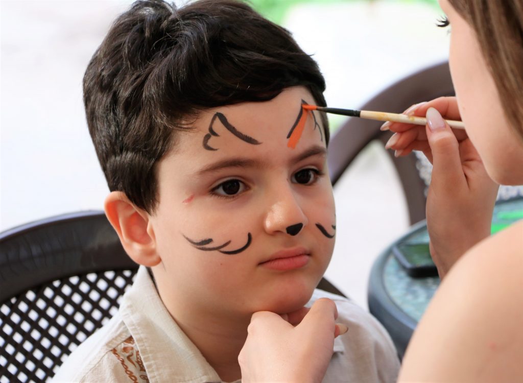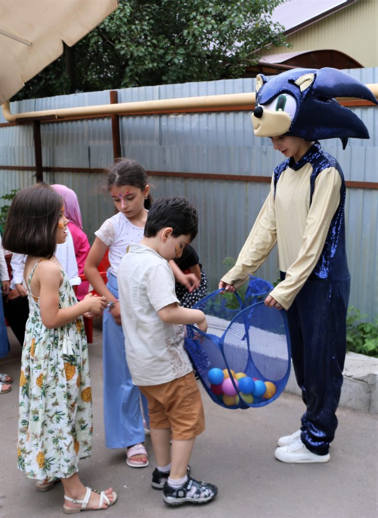 По такому особому случаю была организована праздничная программа. Детей развлекали аниматоры, они играли в игры и проводили конкурсы. Также мальчики и девочки могли украсить себя аквагриммом.