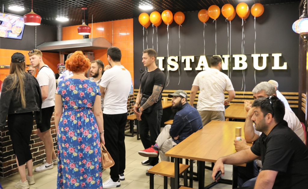 После того, как почетные гости и учредители «ISTANBUL street food» перерезали ленточку, всех пригласили в кафе. Приветливый персонал встречает посетителей. В этот вечер каждый мог отведать кулинарные изыски турецкой кухни, попробовать разнообразные напитки и восточные сладости.