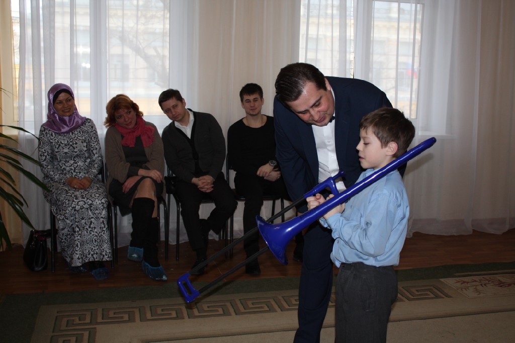 Удержать детей на месте было невозможно. Кто-то даже смог побывать в качестве участника «Брандт Брасса», овладев игрой на незатейливых инструментах. Изюминкой вечера стал синий тромбон, на котором смог поиграть любой желающий.