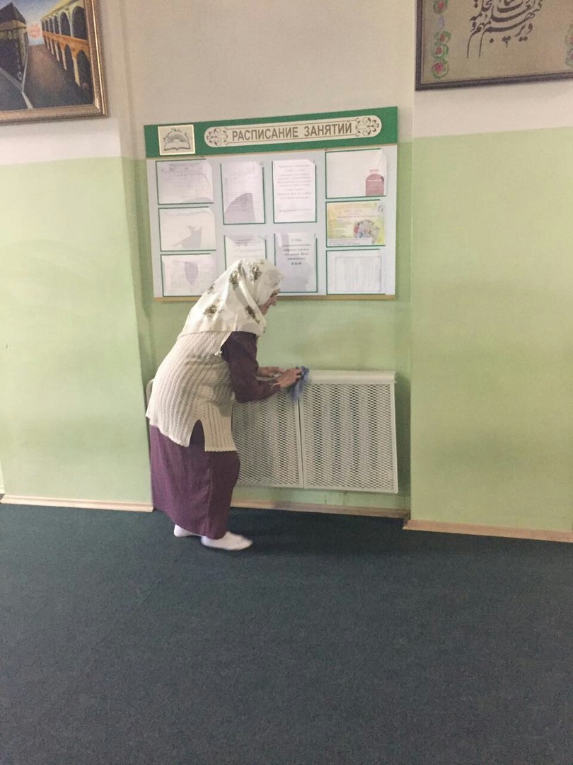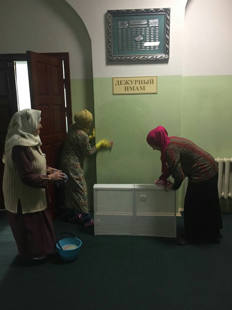 Генеральная уборка была проведена внутри здания. За несколько часов мусульманки вымыли окна на цокольном, первом и втором этажах. Кроме этого, влажная уборка прошла в кабинетах, учебных классах, женском зале и в комнатах для омовения.