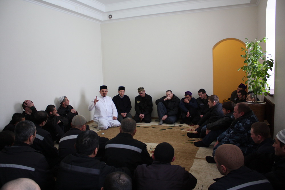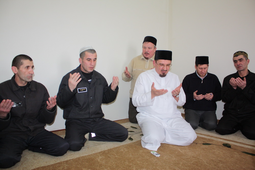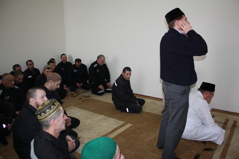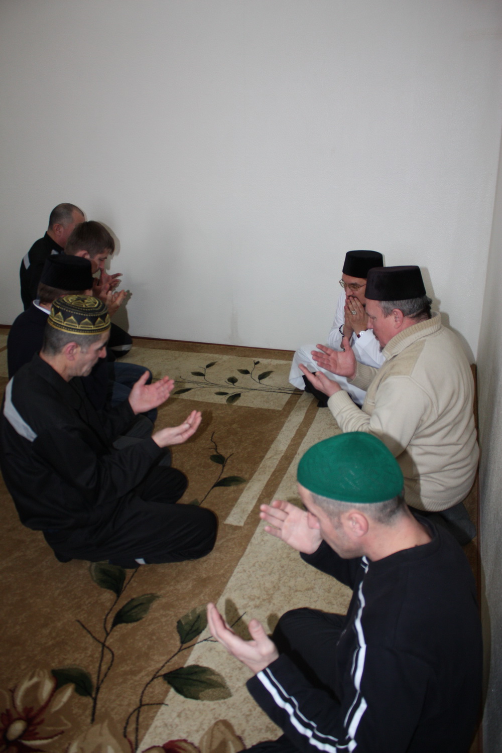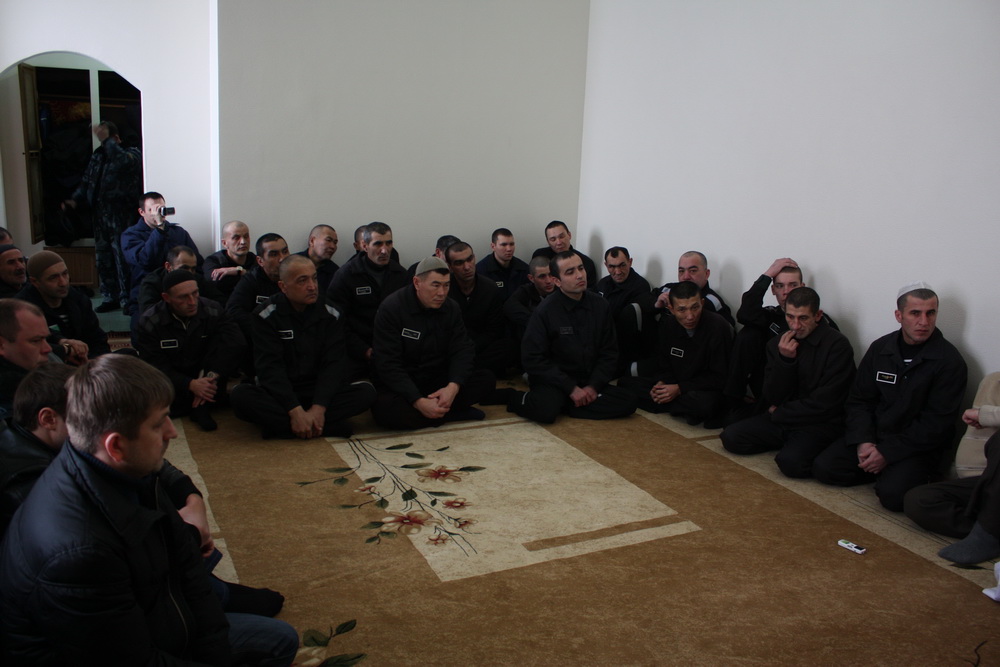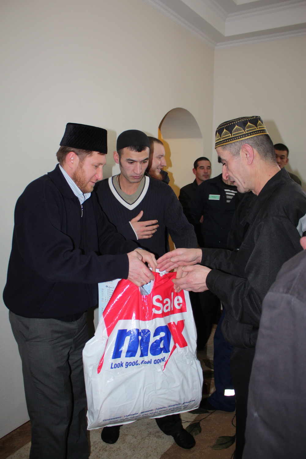 С наступлением времени молитвы в новой мечети прозвучал азан, и мусульмане совершили коллективный Зухр-намаз. Затем гости передали осужденным исламские книги, журналы, а также диски с обучающими программами по чтению Корана.