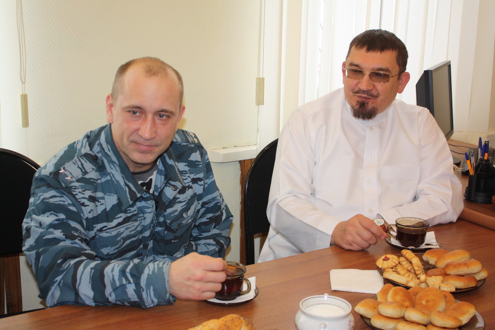 Поездка в Красноармейский район завершилась встречей муфтия региона с руководством исправительного учреждения. Мукаддас-хазрат выразил слова благодарности начальнику ИК-7 Михаилу Данилину за поддержку в духовно-нравственном воспитании осужденных и вручил ему памятные подарки.