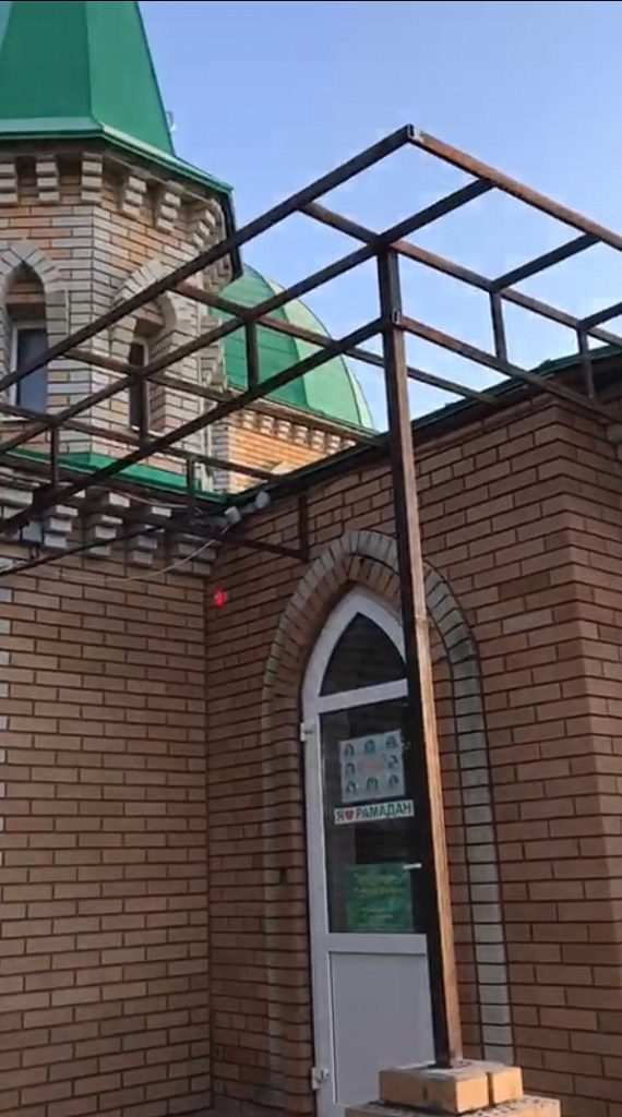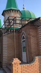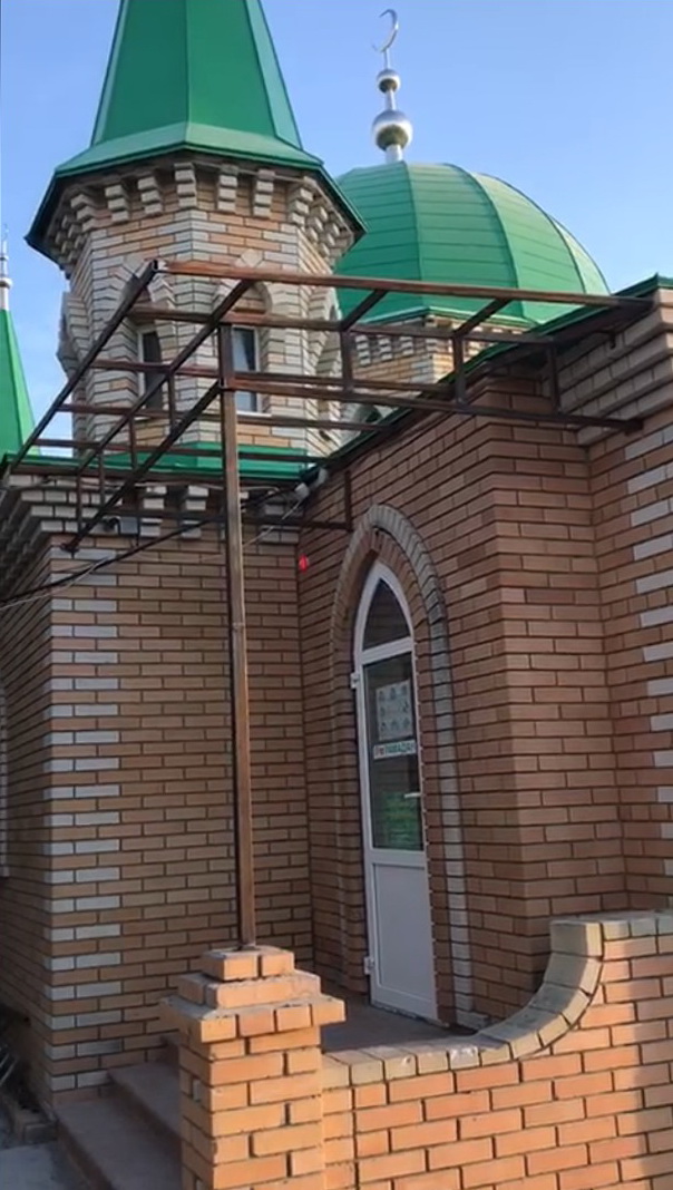 Так, верующие реконструировали ступени при входе в здание и положили новую керамическую плитку. Фундамент мечети декорировали сайдингом. Также был изготовлен и установлен каркас навеса над крыльцом дома Аллаха.