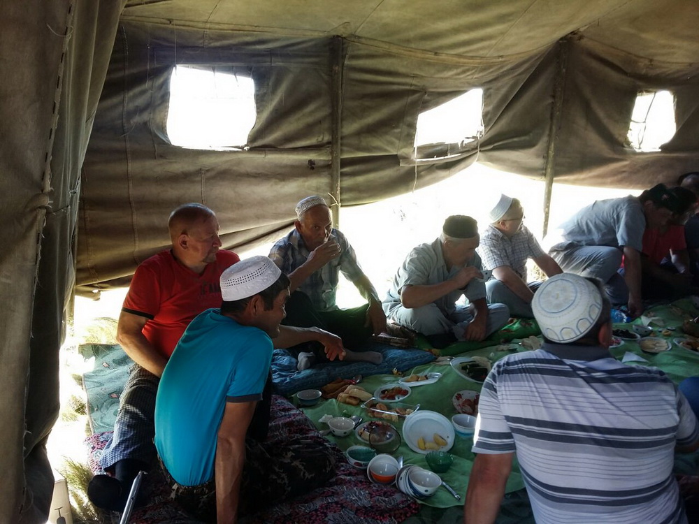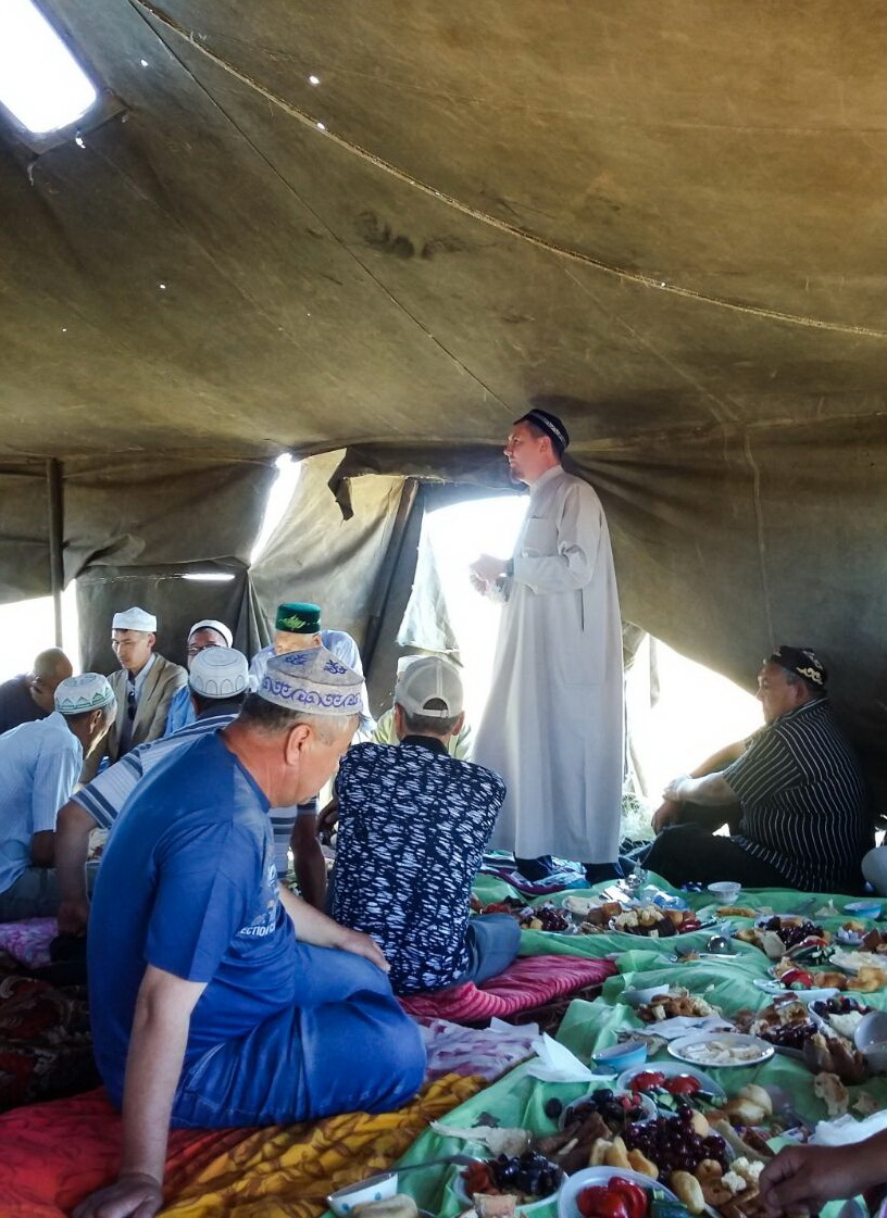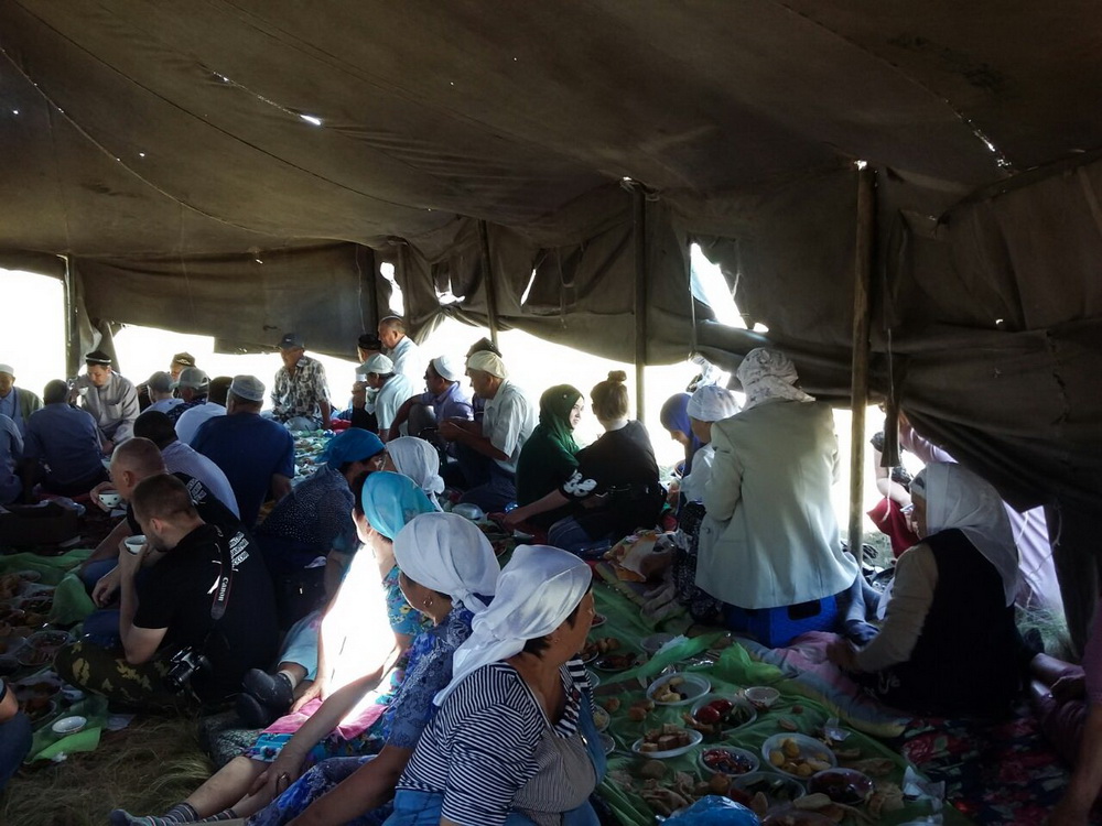 В ходе меджлиса верующие также совершили коллективный намаз. Встреча в шатре продолжилась за праздничным угощением и чаепитием.