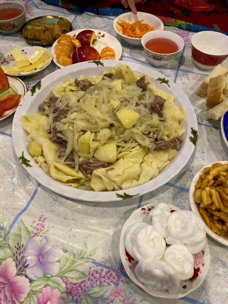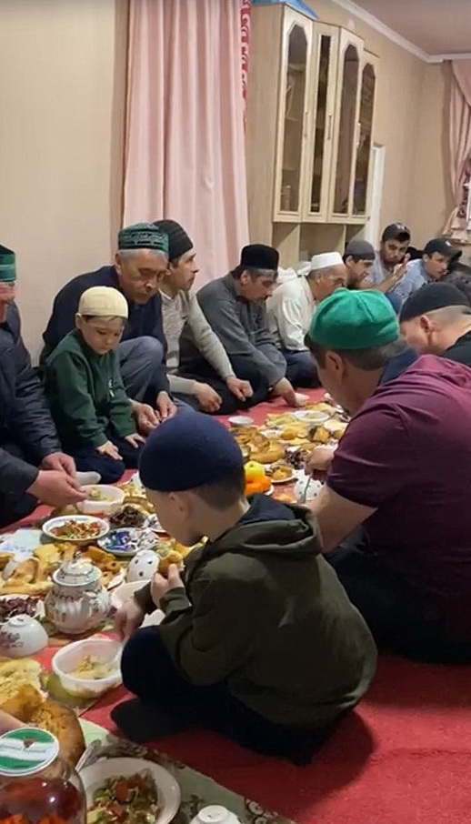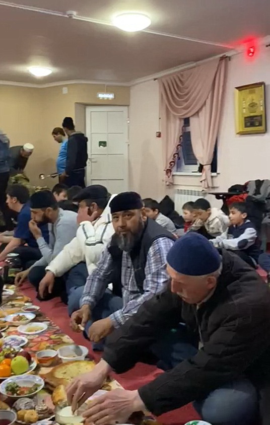 С заходом солнца постящиеся прервали уразу водой из священного источника Зам-зам. После коллективного Магриб-намаза все направились на ифтар, где могли отведать традиционные блюда мусульманских народов.